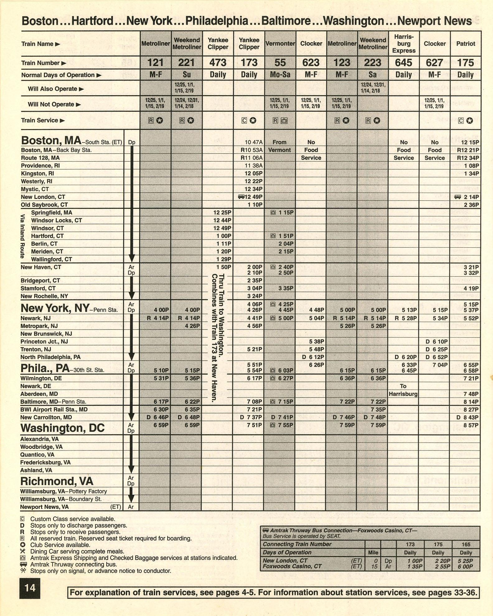 This timetable image is ©1995 National Railroad Passenger Corporation (Amtrak).