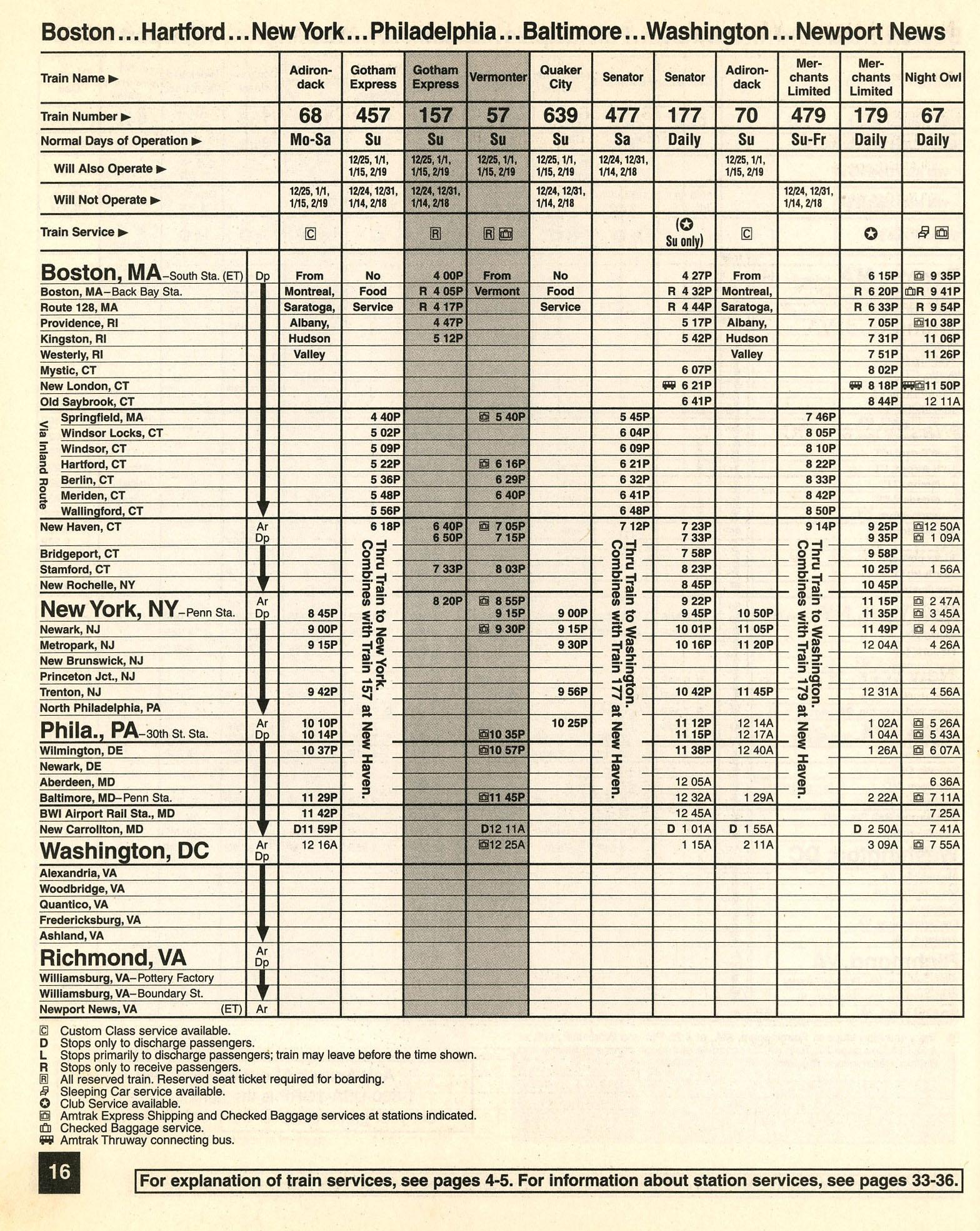 This timetable image is ©1995 National Railroad Passenger Corporation (Amtrak).