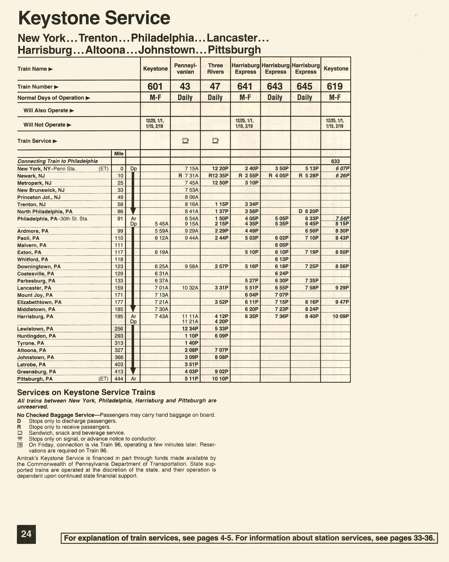 This timetable image is ©1995 National Railroad Passenger Corporation (Amtrak).