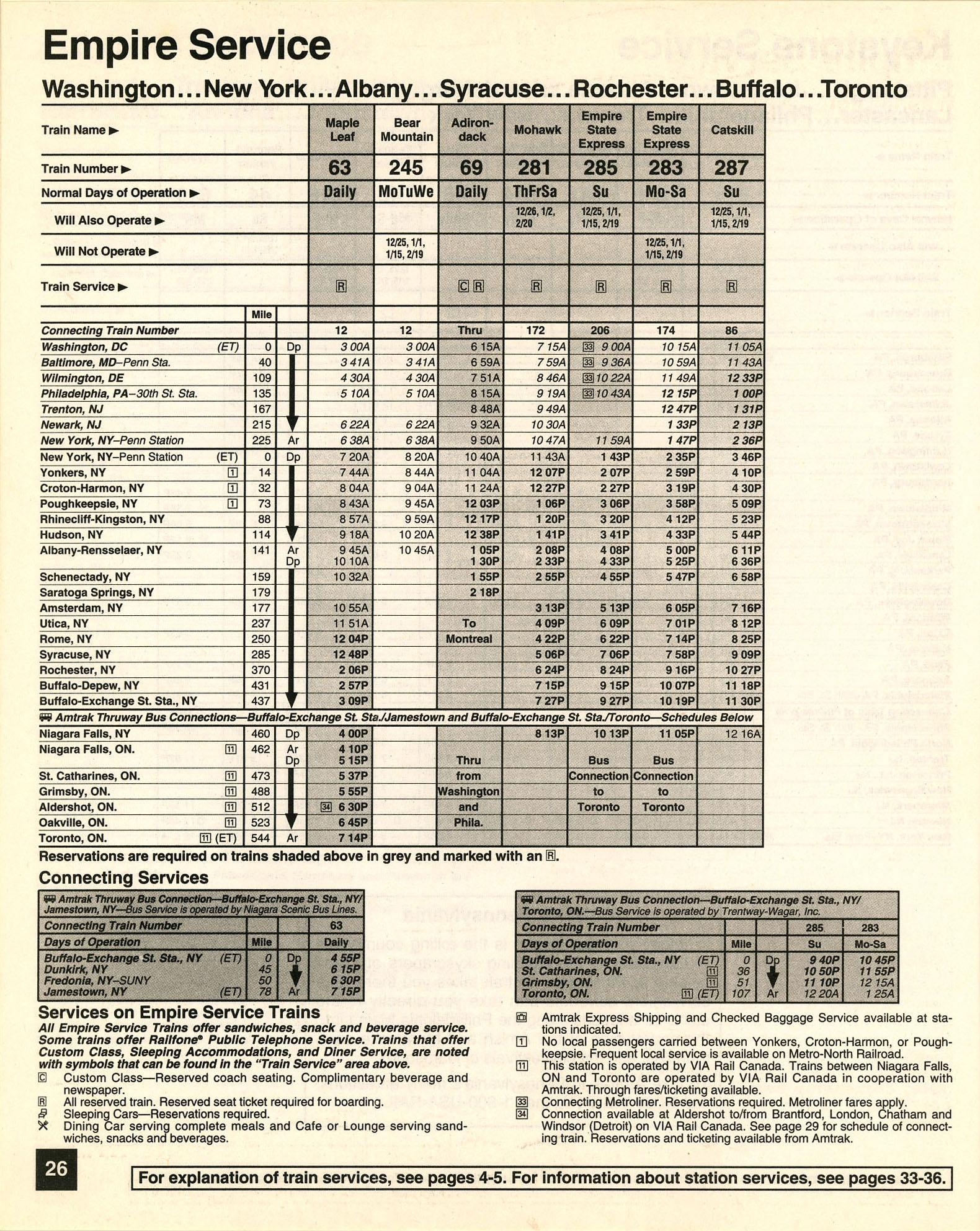 This timetable image is ©1995 National Railroad Passenger Corporation (Amtrak).