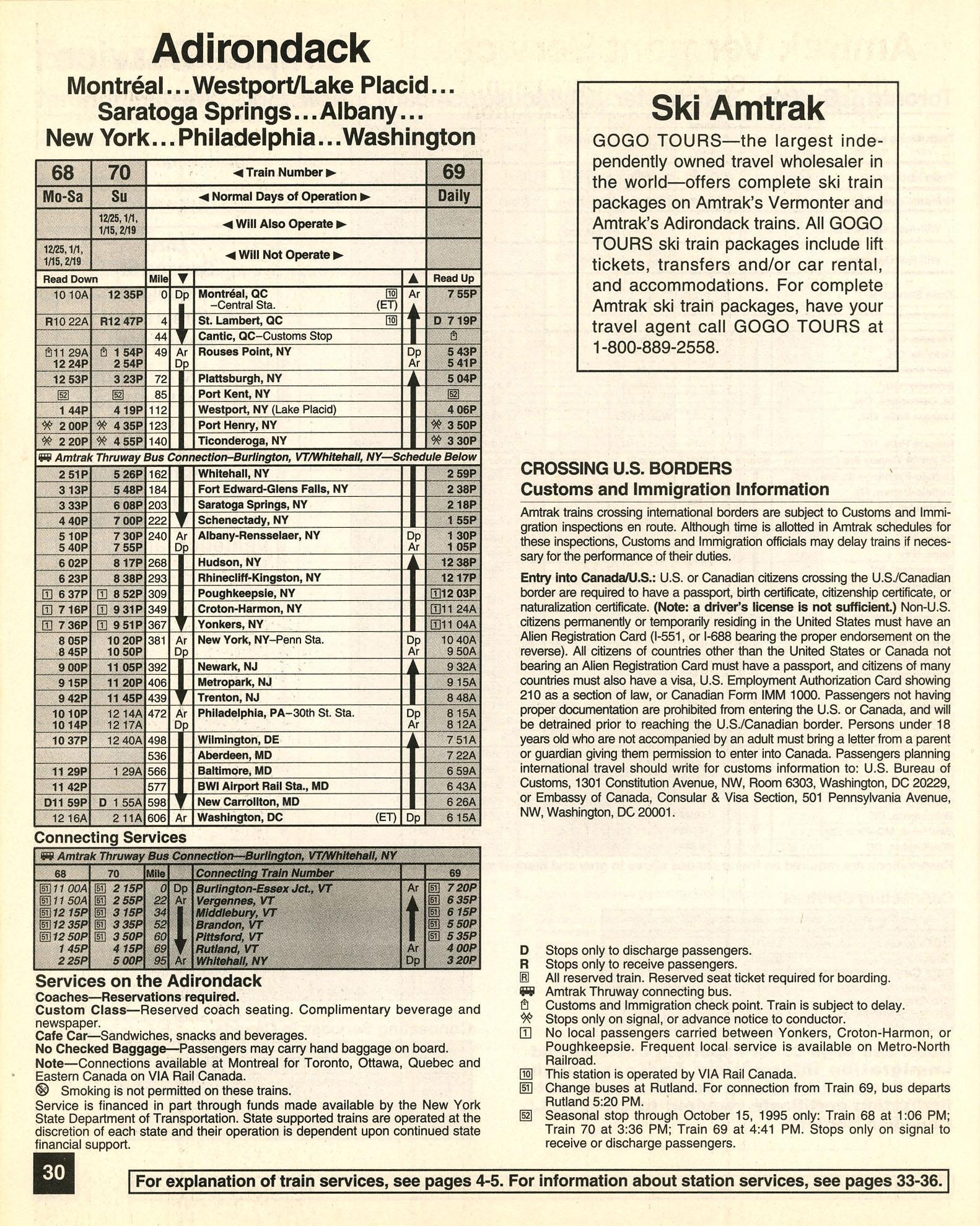 This timetable image is ©1995 National Railroad Passenger Corporation (Amtrak).