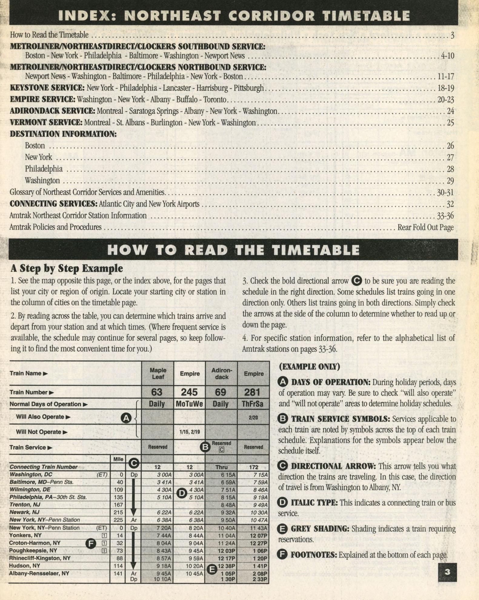 This timetable image is ©1995 National Railroad Passenger Corporation (Amtrak).