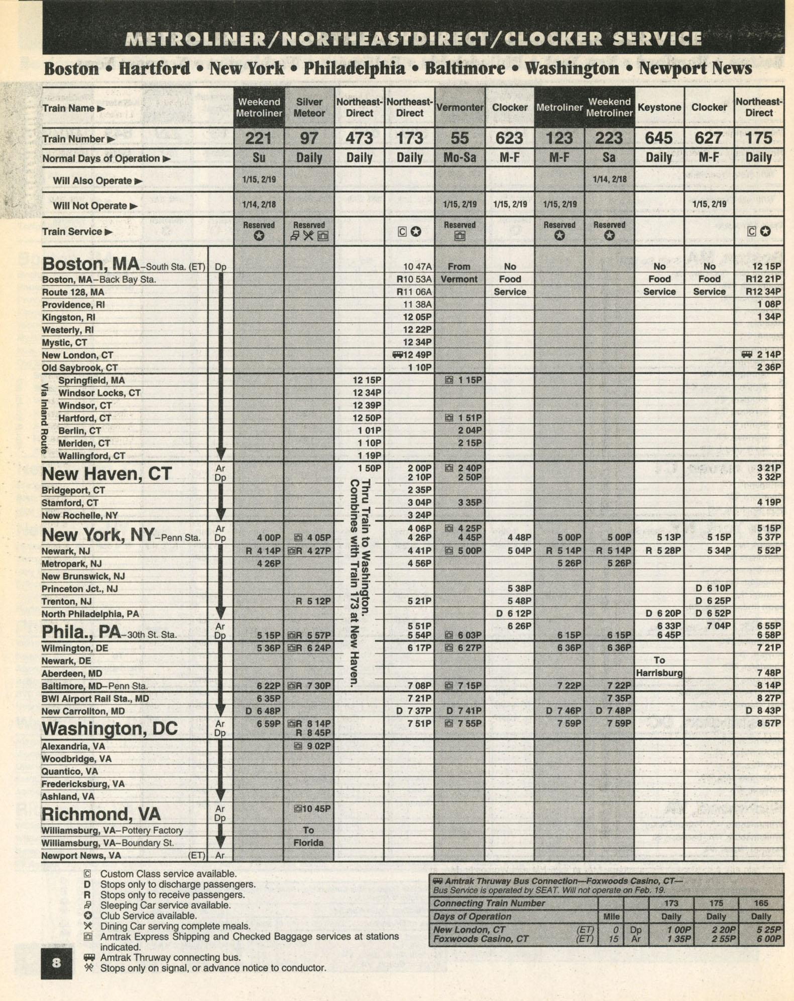 This timetable image is ©1995 National Railroad Passenger Corporation (Amtrak).