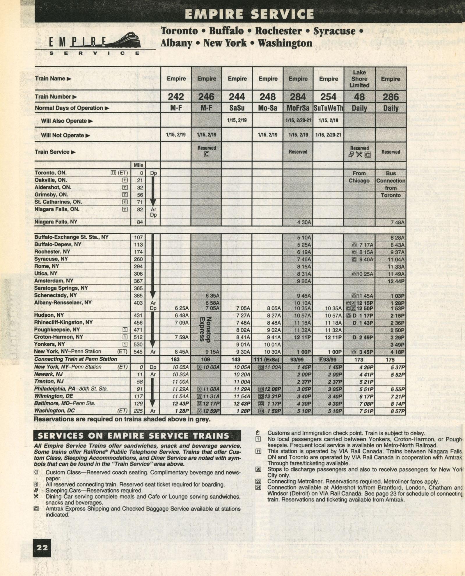 This timetable image is ©1995 National Railroad Passenger Corporation (Amtrak).