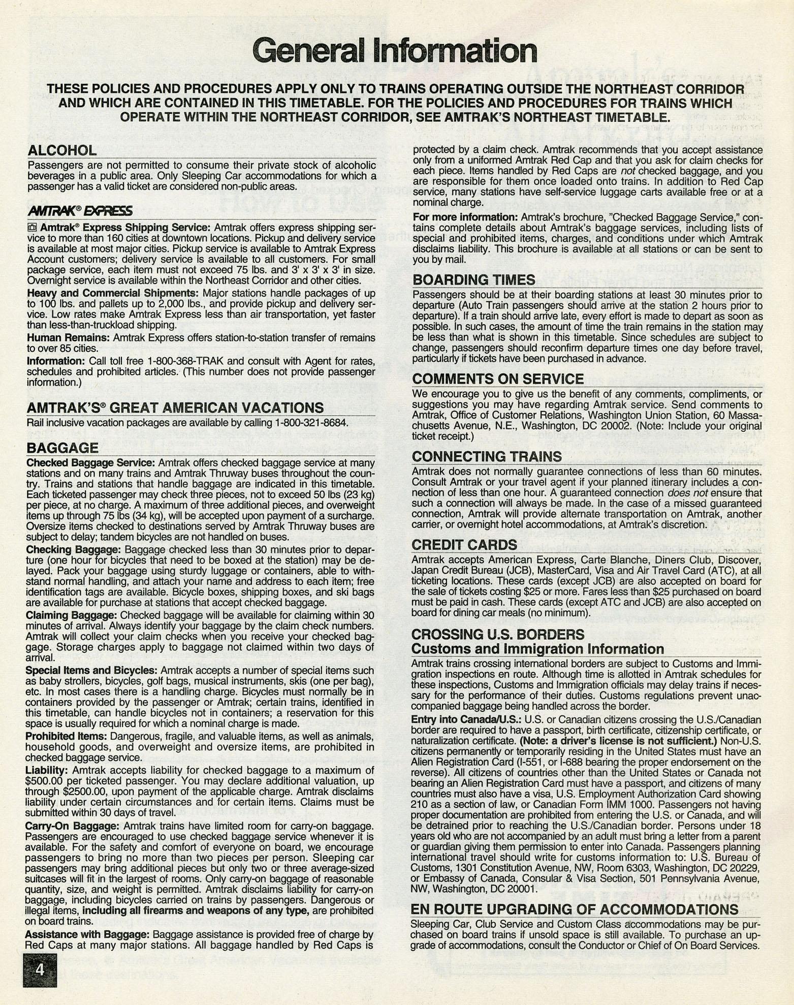 This timetable image is ©1995 National Railroad Passenger Corporation (Amtrak).