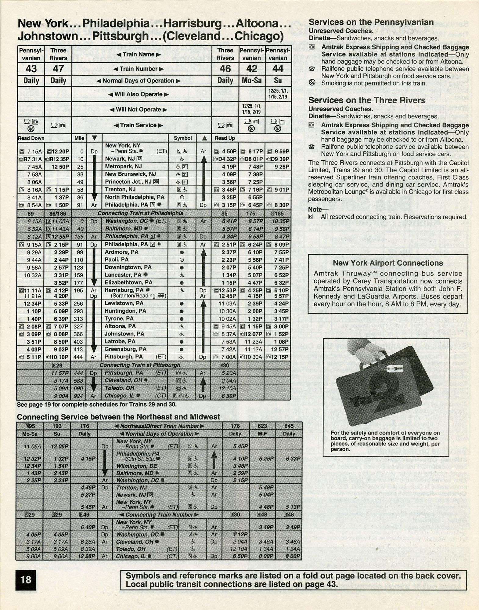 This timetable image is ©1995 National Railroad Passenger Corporation (Amtrak).