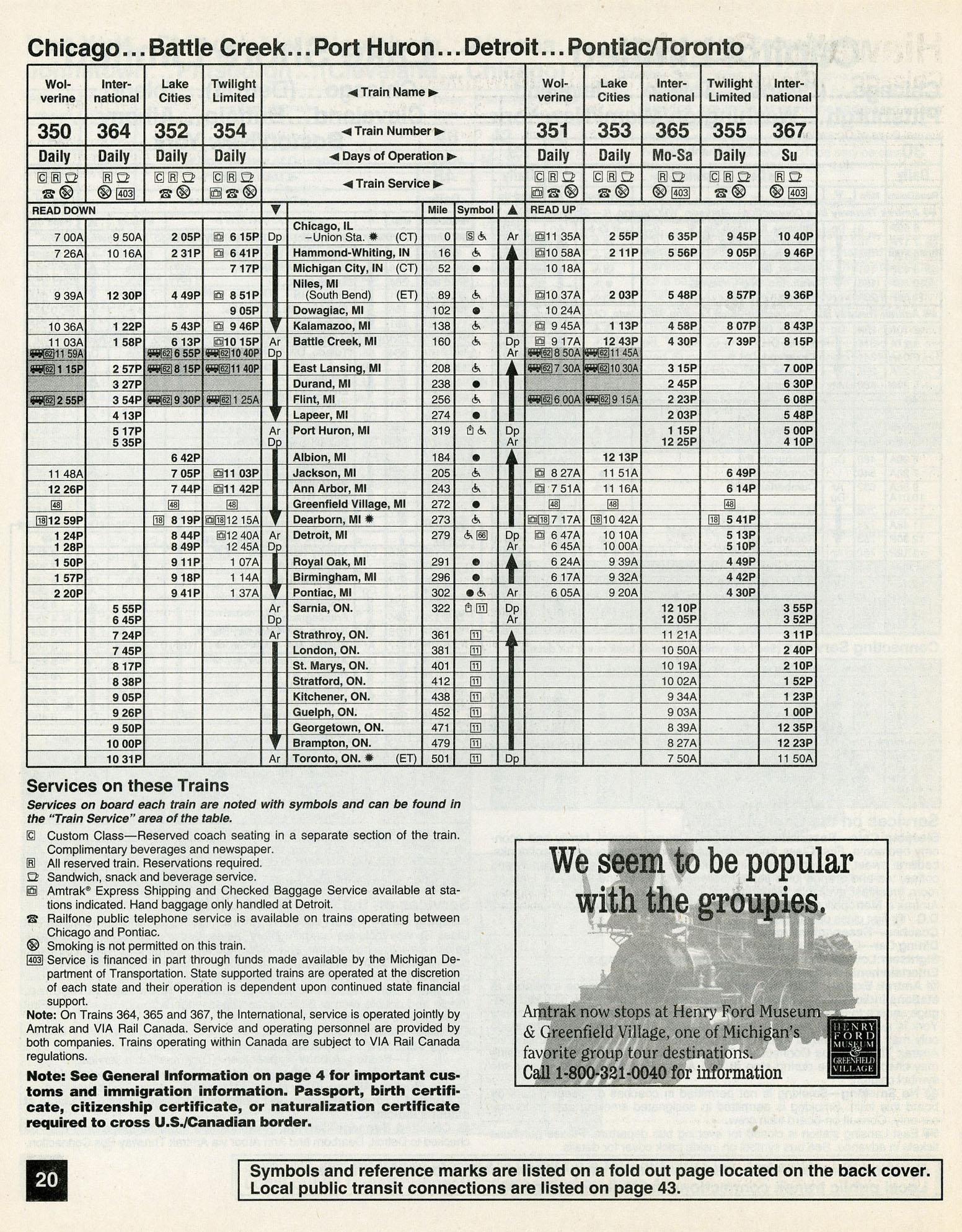 This timetable image is ©1995 National Railroad Passenger Corporation (Amtrak).