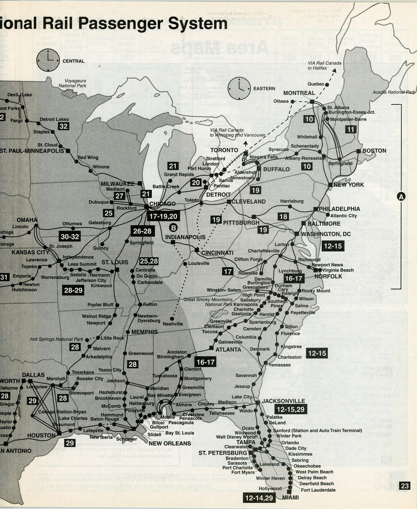 This timetable image is ©1995 National Railroad Passenger Corporation (Amtrak).