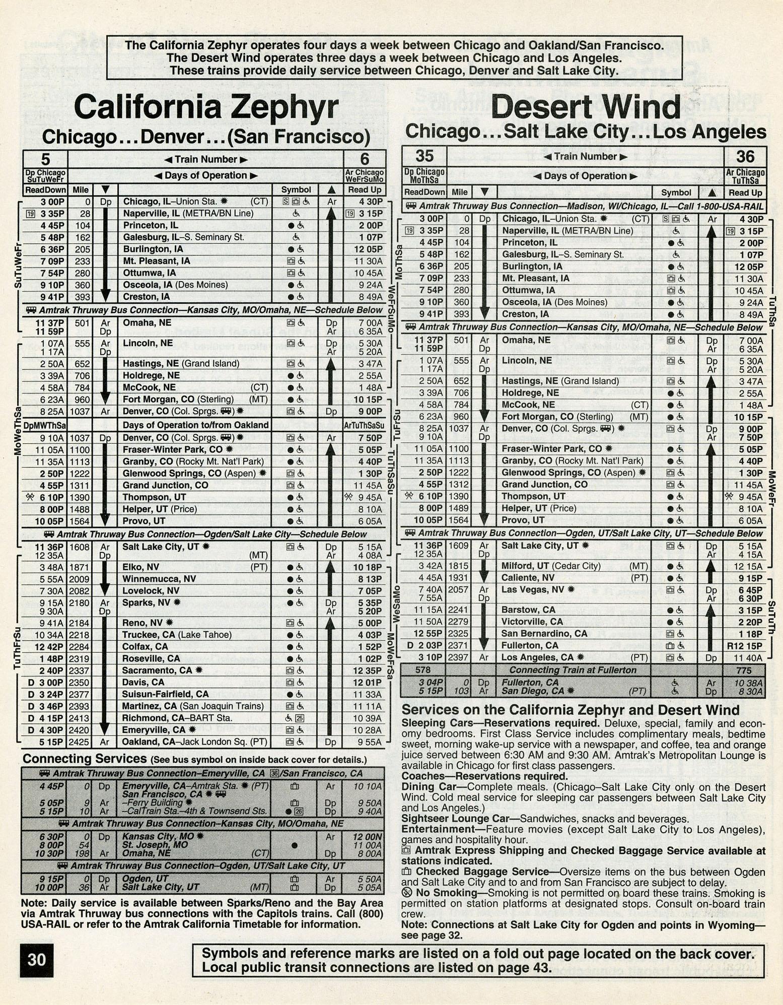 This timetable image is ©1995 National Railroad Passenger Corporation (Amtrak).