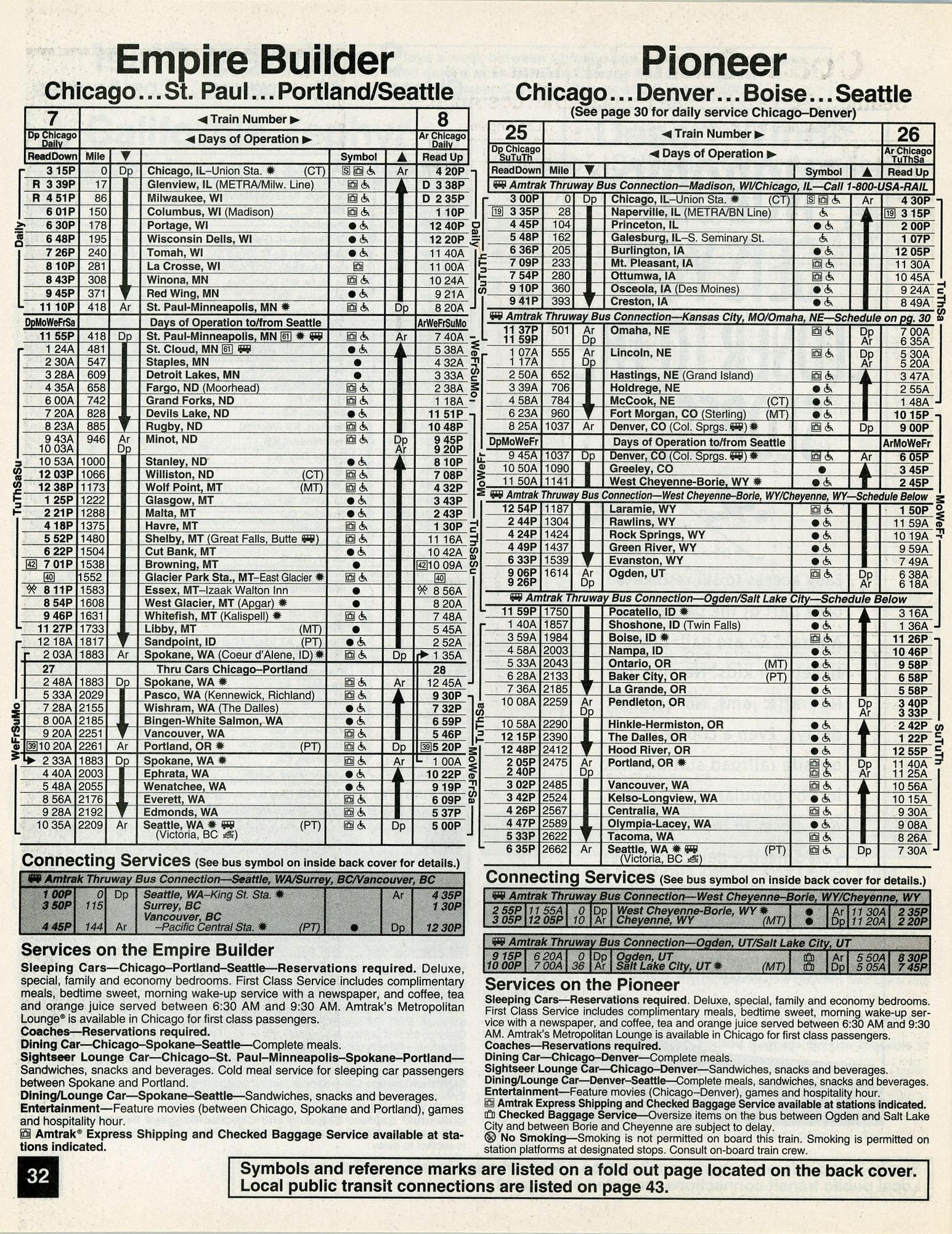 This timetable image is ©1995 National Railroad Passenger Corporation (Amtrak).