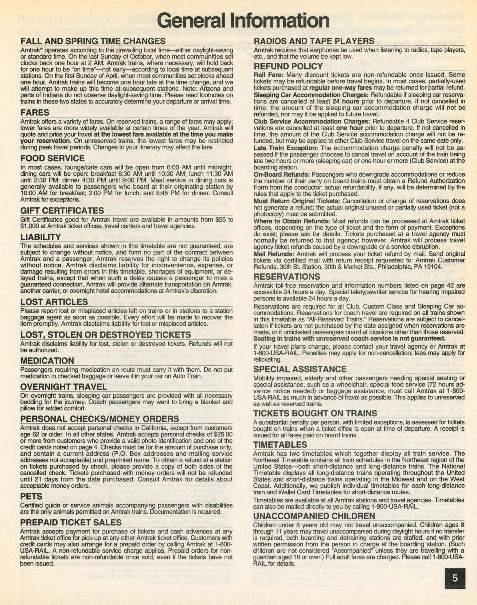 This timetable image is ©1995 National Railroad Passenger Corporation (Amtrak).