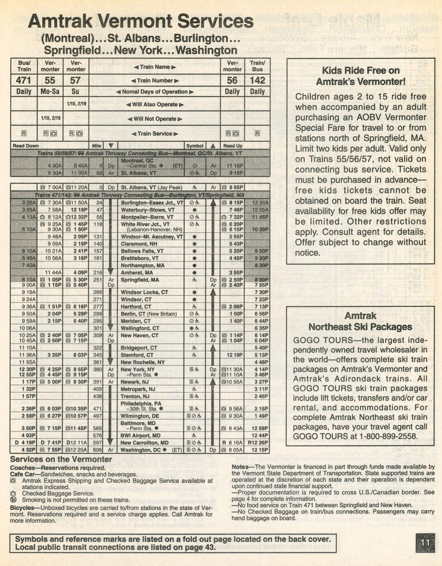 This timetable image is ©1995 National Railroad Passenger Corporation (Amtrak).
