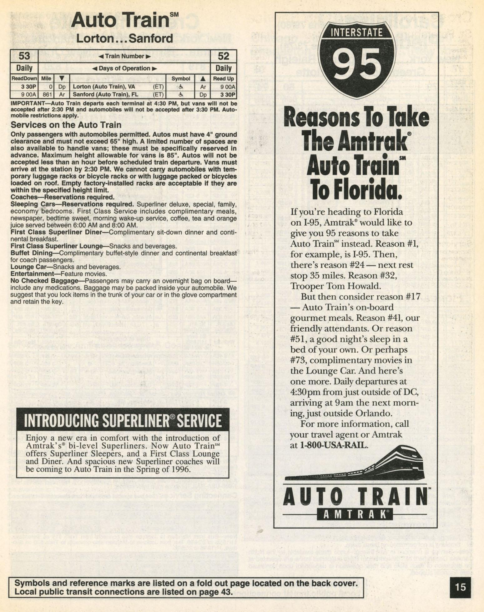 This timetable image is ©1995 National Railroad Passenger Corporation (Amtrak).