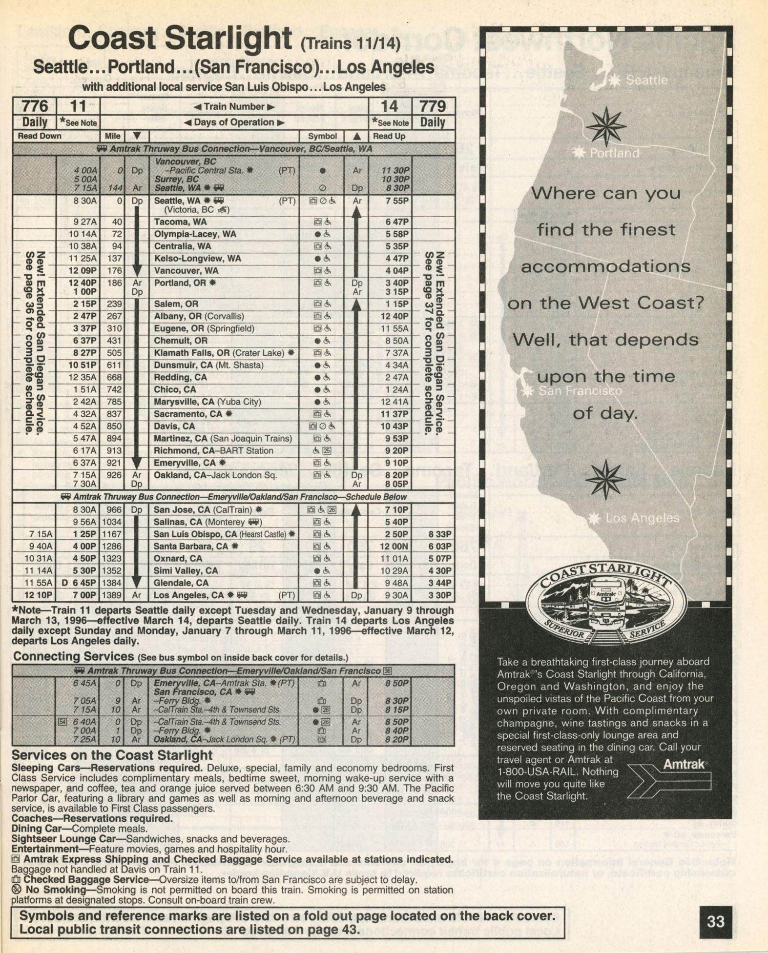 This timetable image is ©1995 National Railroad Passenger Corporation (Amtrak).