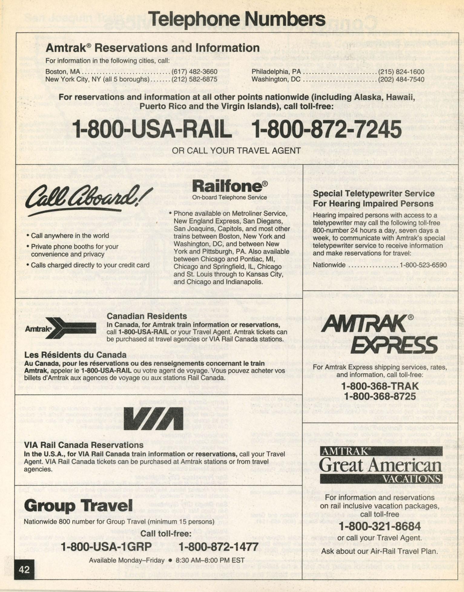This timetable image is ©1995 National Railroad Passenger Corporation (Amtrak).