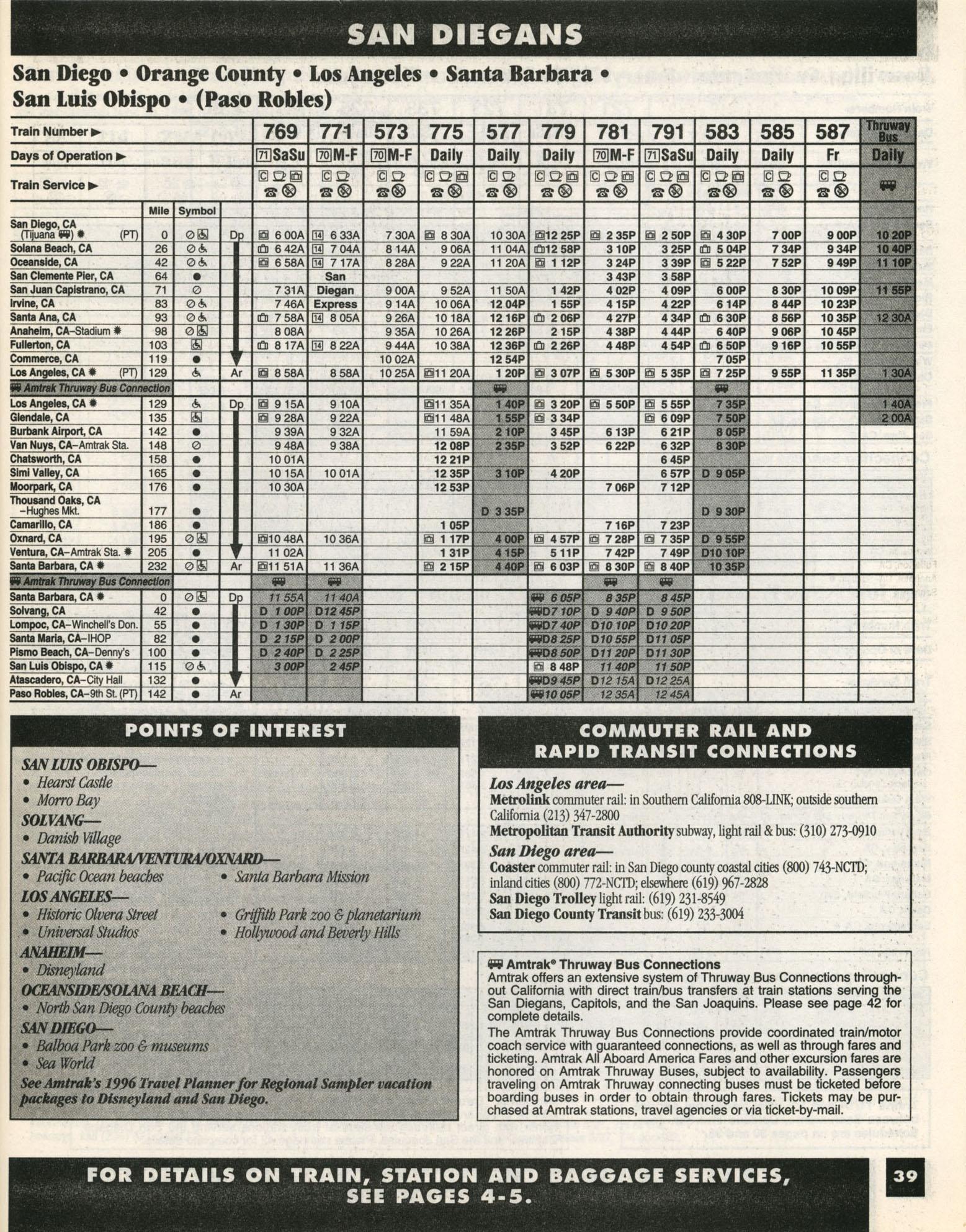 This timetable image is ©1996 National Railroad Passenger Corporation (Amtrak).
