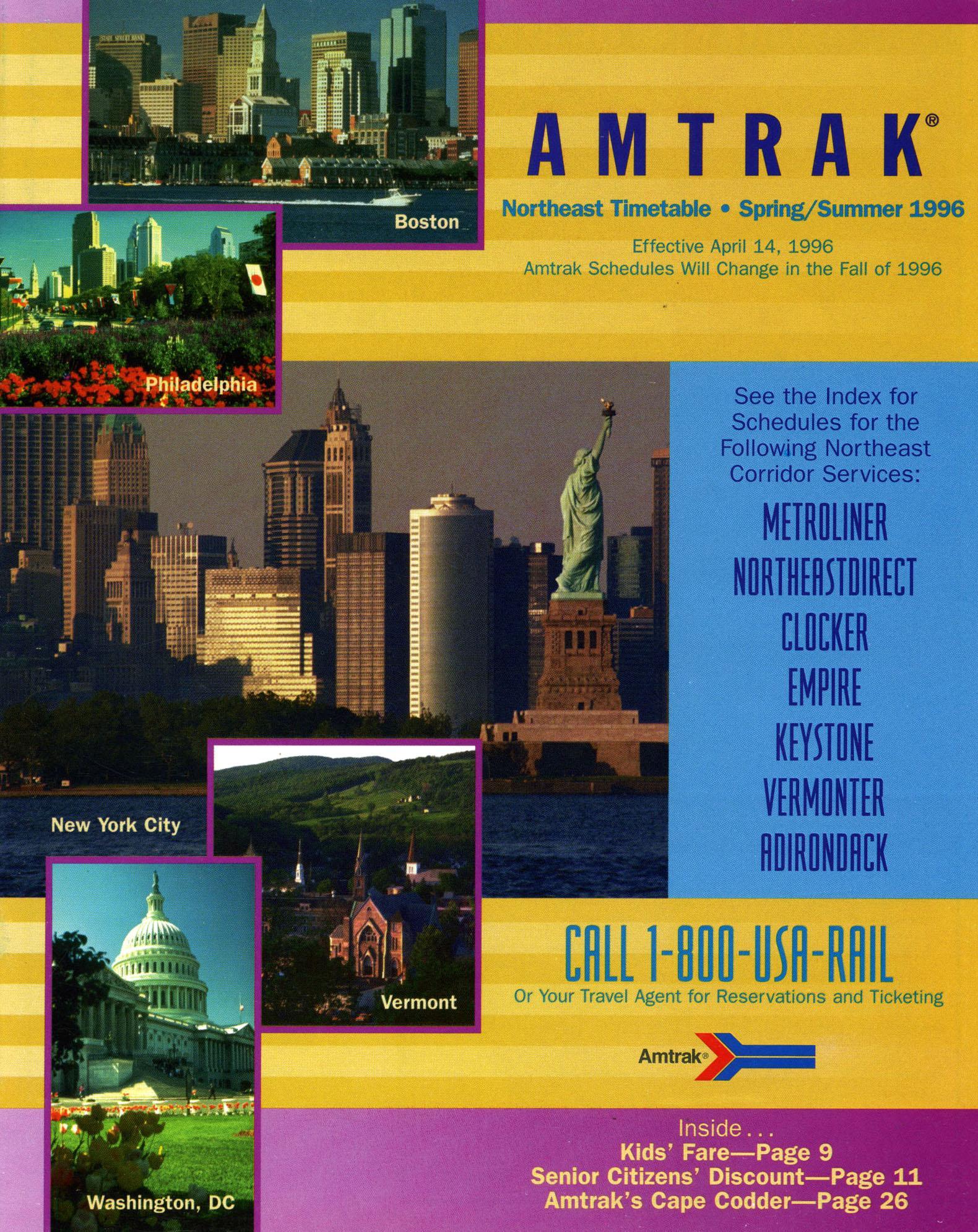 This timetable image is ©1996 National Railroad Passenger Corporation (Amtrak).