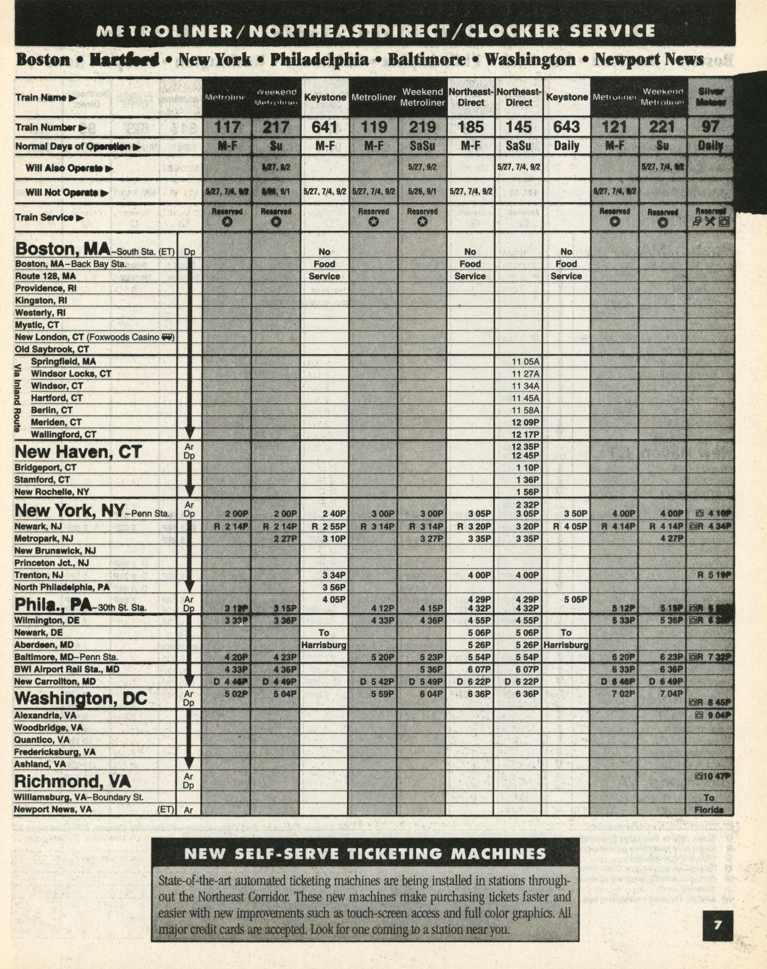 This timetable image is ©1996 National Railroad Passenger Corporation (Amtrak).