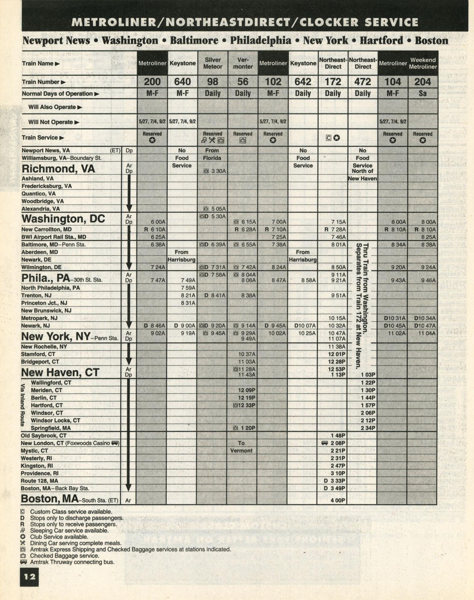This timetable image is ©1996 National Railroad Passenger Corporation (Amtrak).