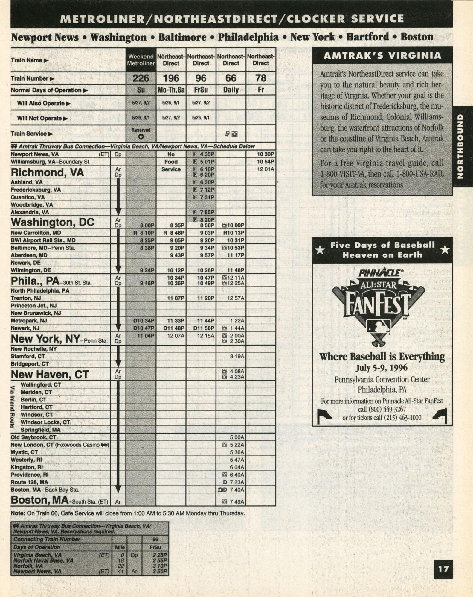 This timetable image is ©1996 National Railroad Passenger Corporation (Amtrak).