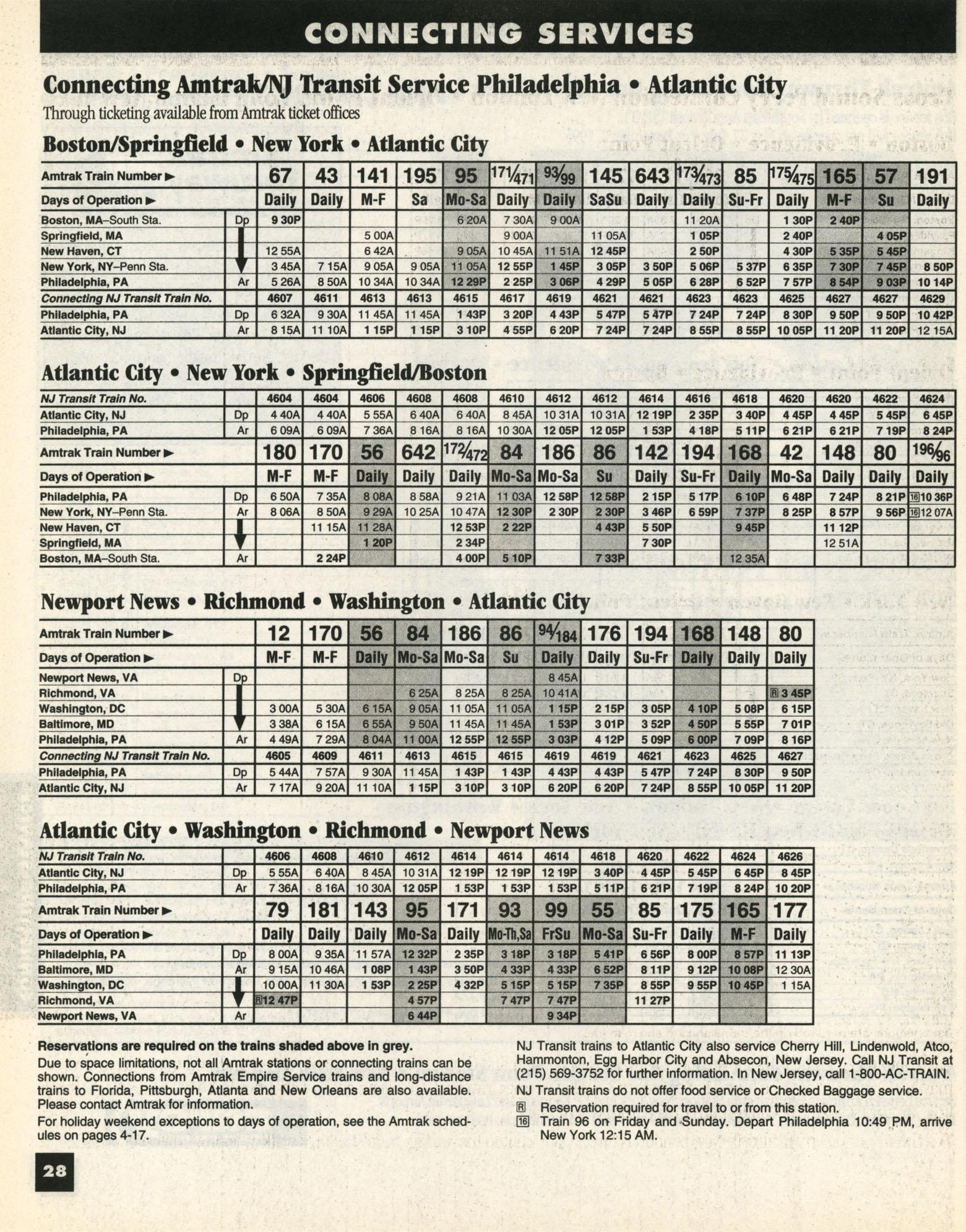 This timetable image is ©1996 National Railroad Passenger Corporation (Amtrak).