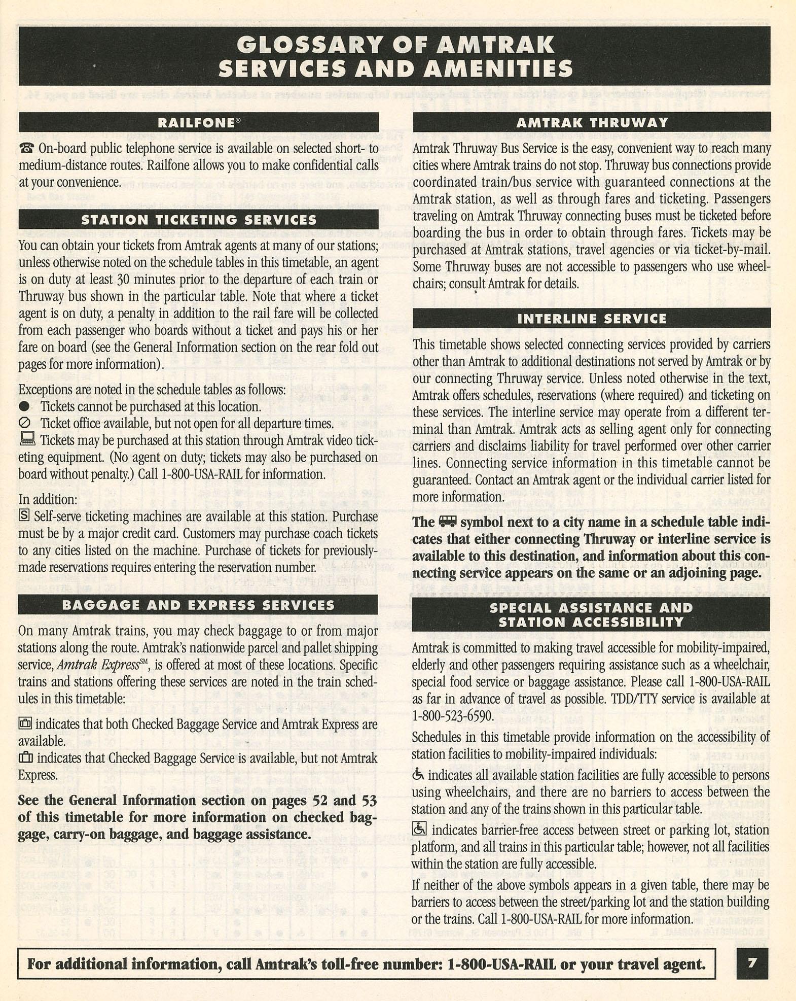 This timetable image is ©1996 National Railroad Passenger Corporation (Amtrak).
