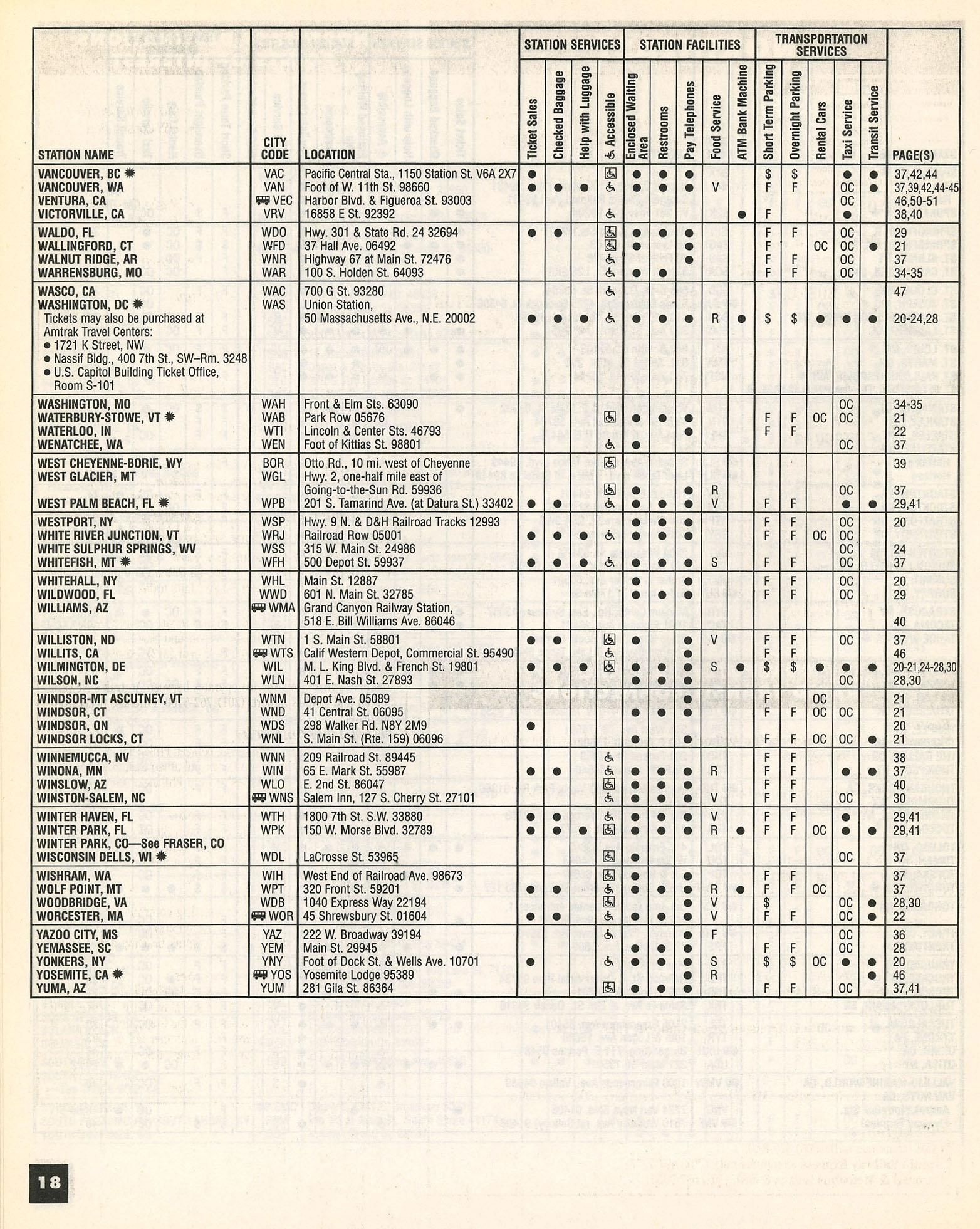 This timetable image is ©1996 National Railroad Passenger Corporation (Amtrak).