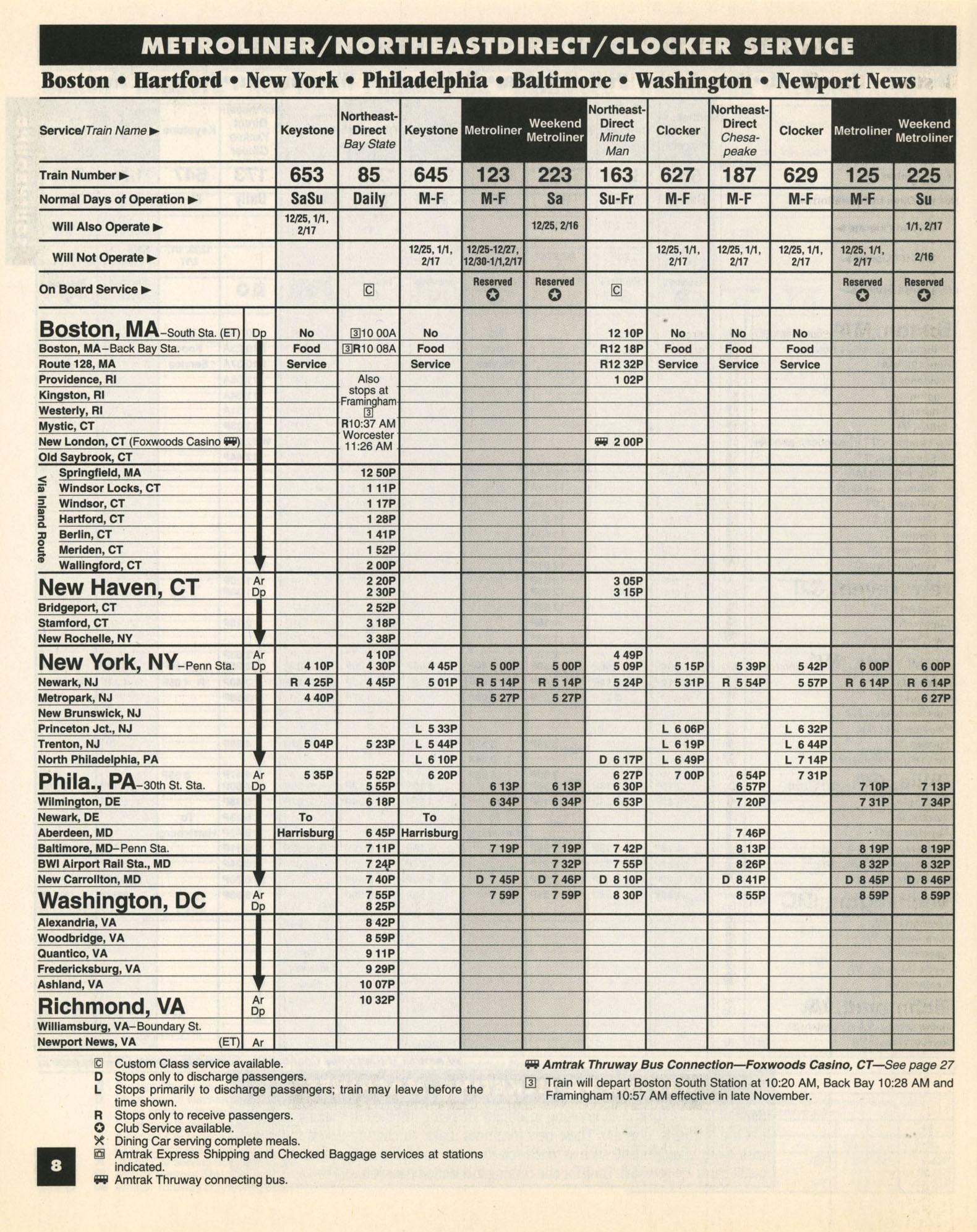 This timetable image is ©1996 National Railroad Passenger Corporation (Amtrak).