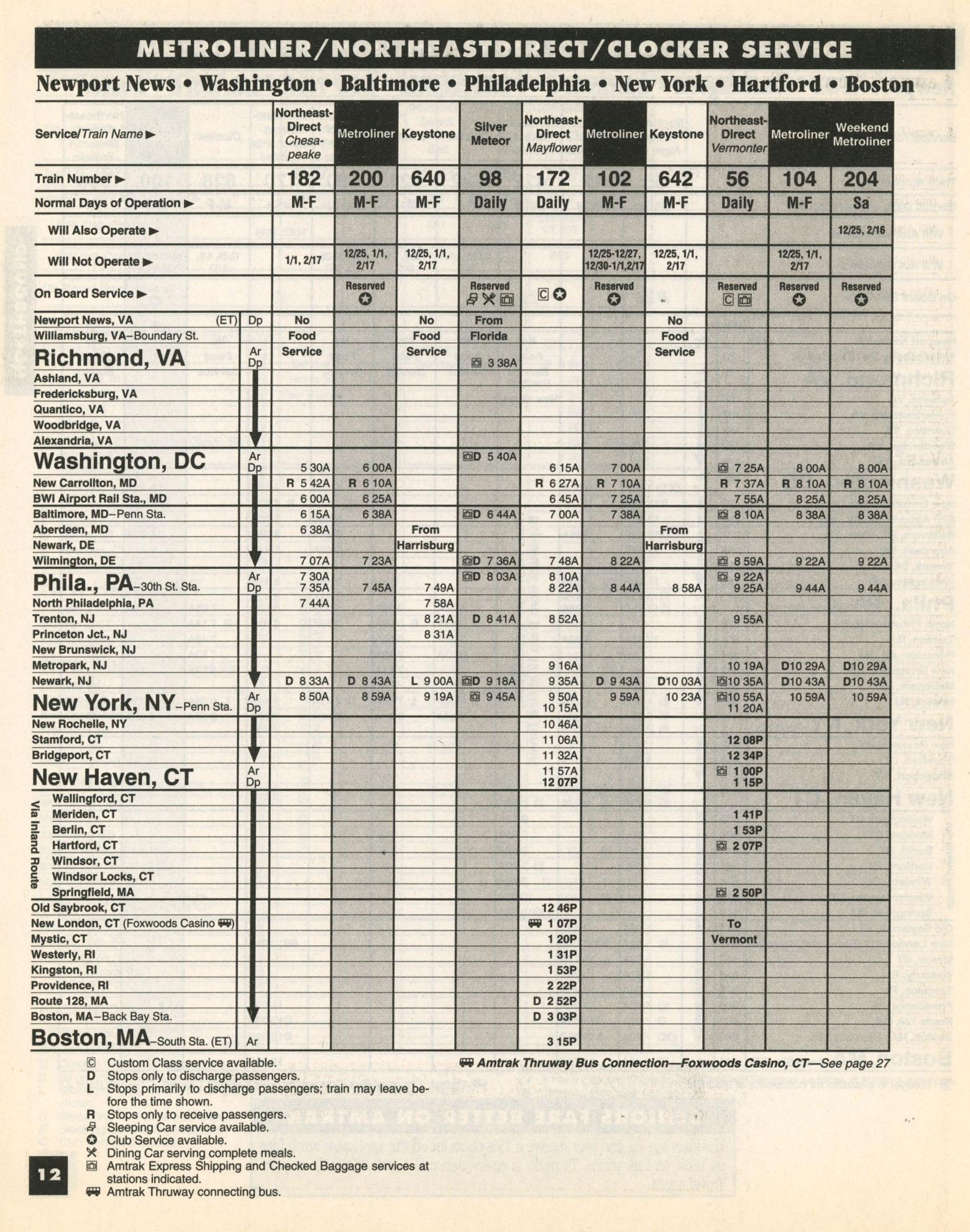 This timetable image is ©1996 National Railroad Passenger Corporation (Amtrak).