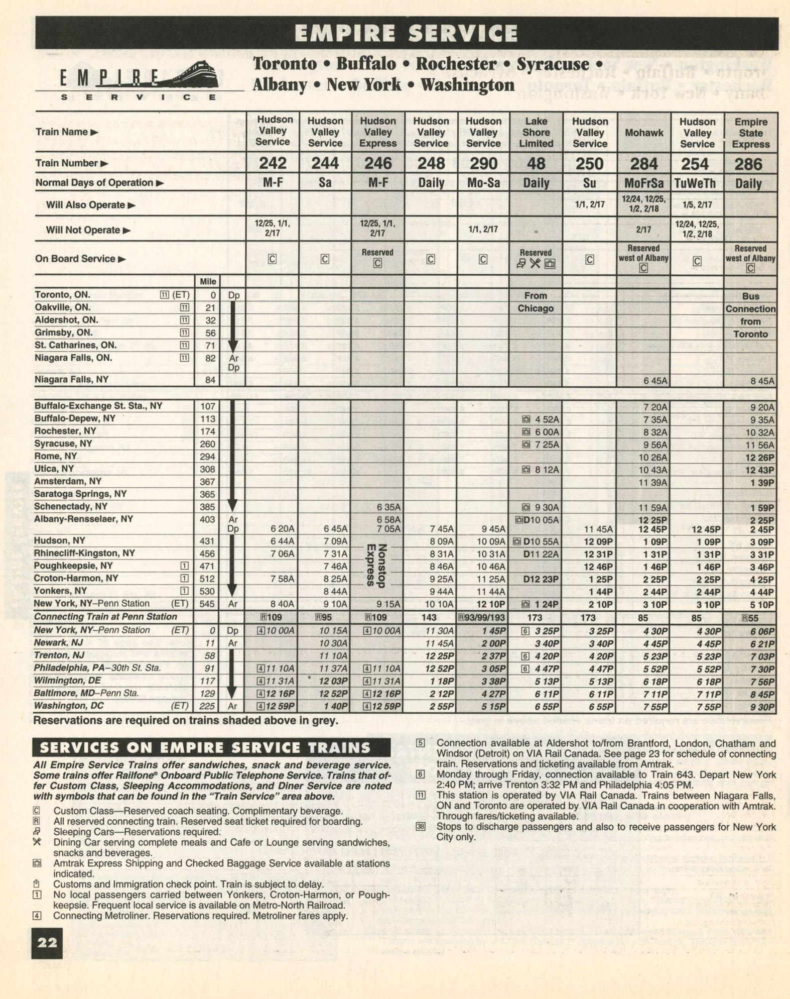This timetable image is ©1996 National Railroad Passenger Corporation (Amtrak).