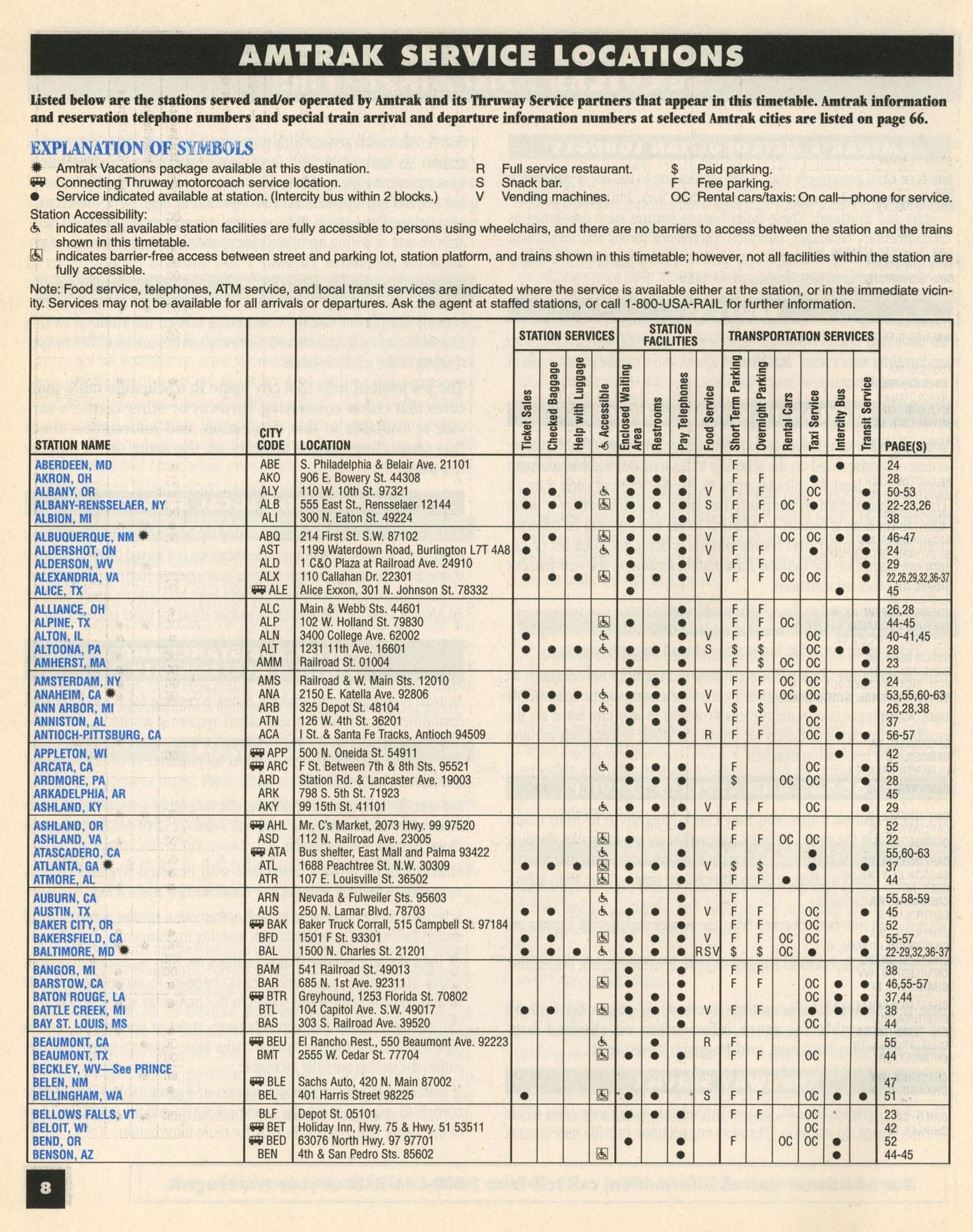 This timetable image is ©1999 National Railroad Passenger Corporation (Amtrak).