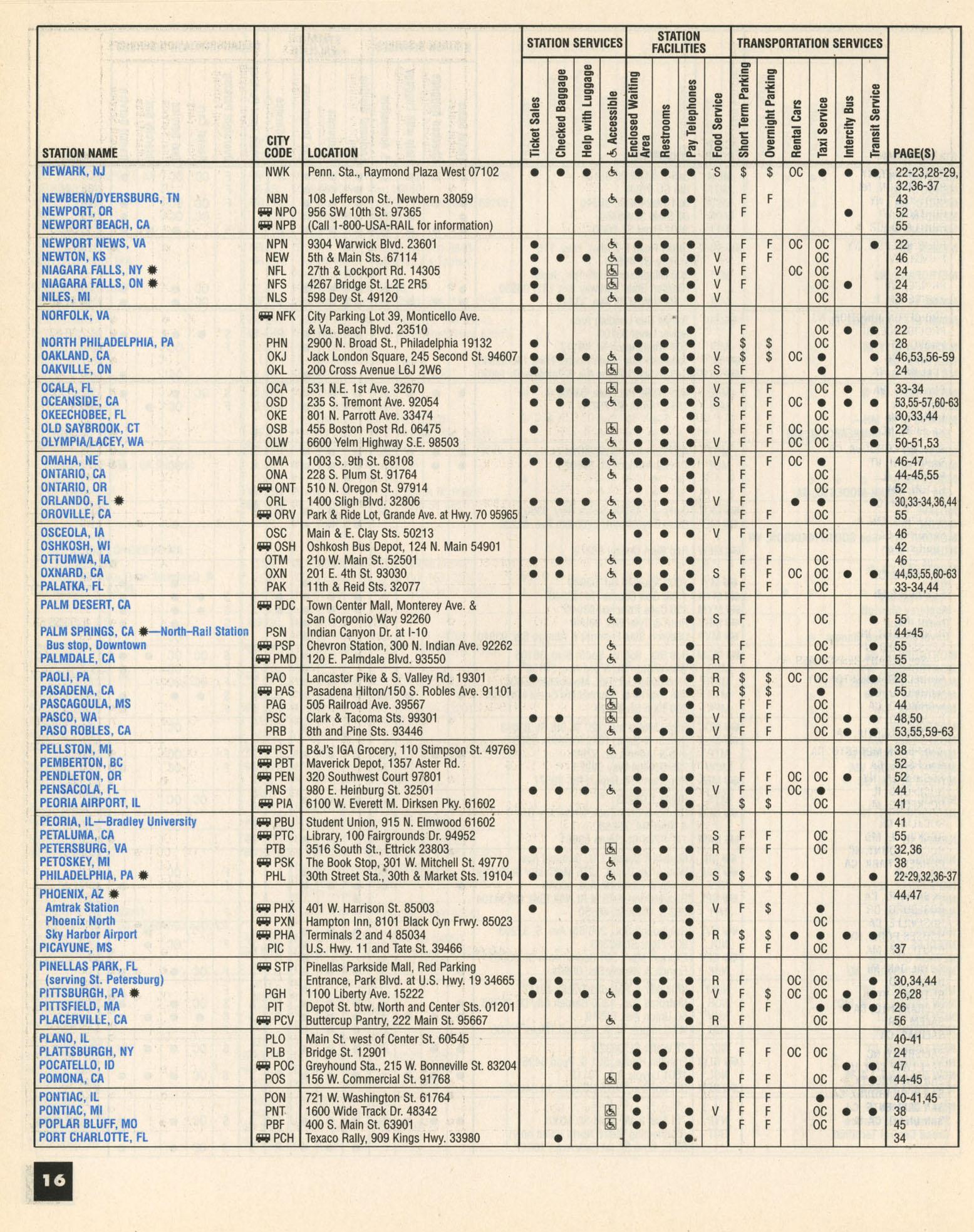 This timetable image is ©1999 National Railroad Passenger Corporation (Amtrak).
