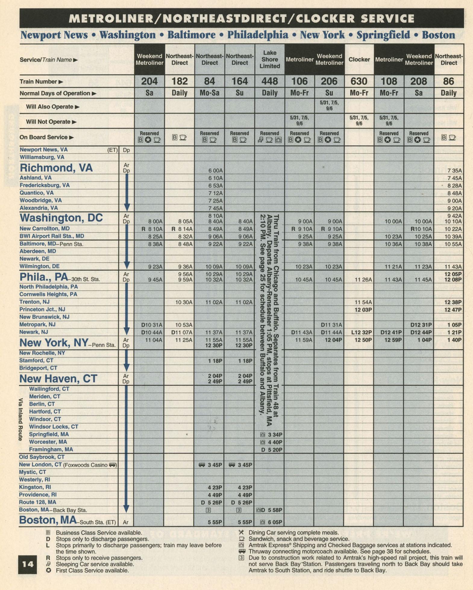 This timetable image is ©1999 National Railroad Passenger Corporation (Amtrak).