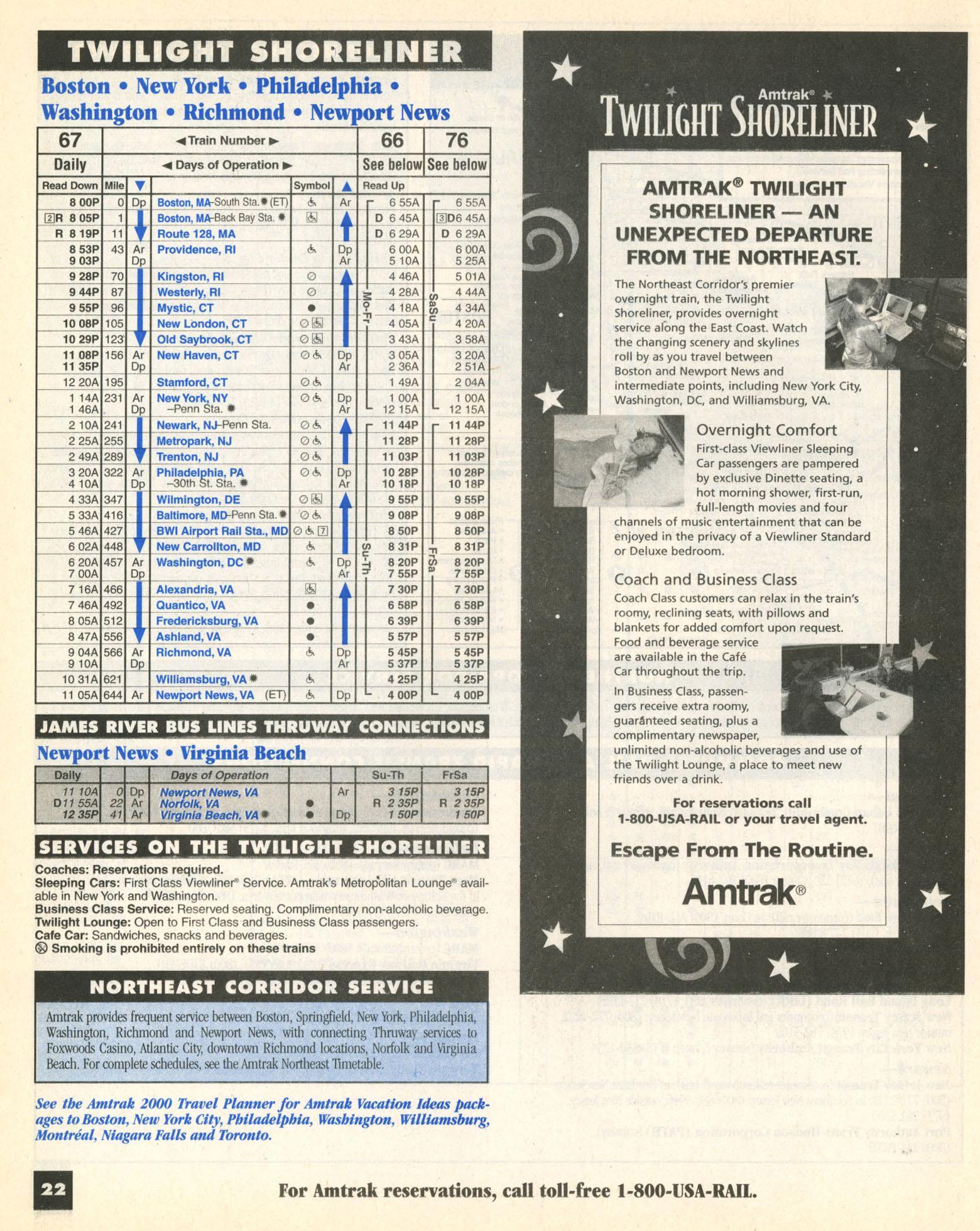 This timetable image is ©1999 National Railroad Passenger Corporation (Amtrak).