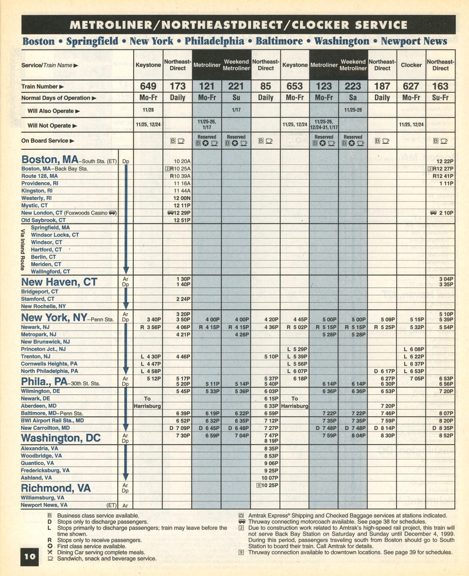 This timetable image is ©1999 National Railroad Passenger Corporation (Amtrak).