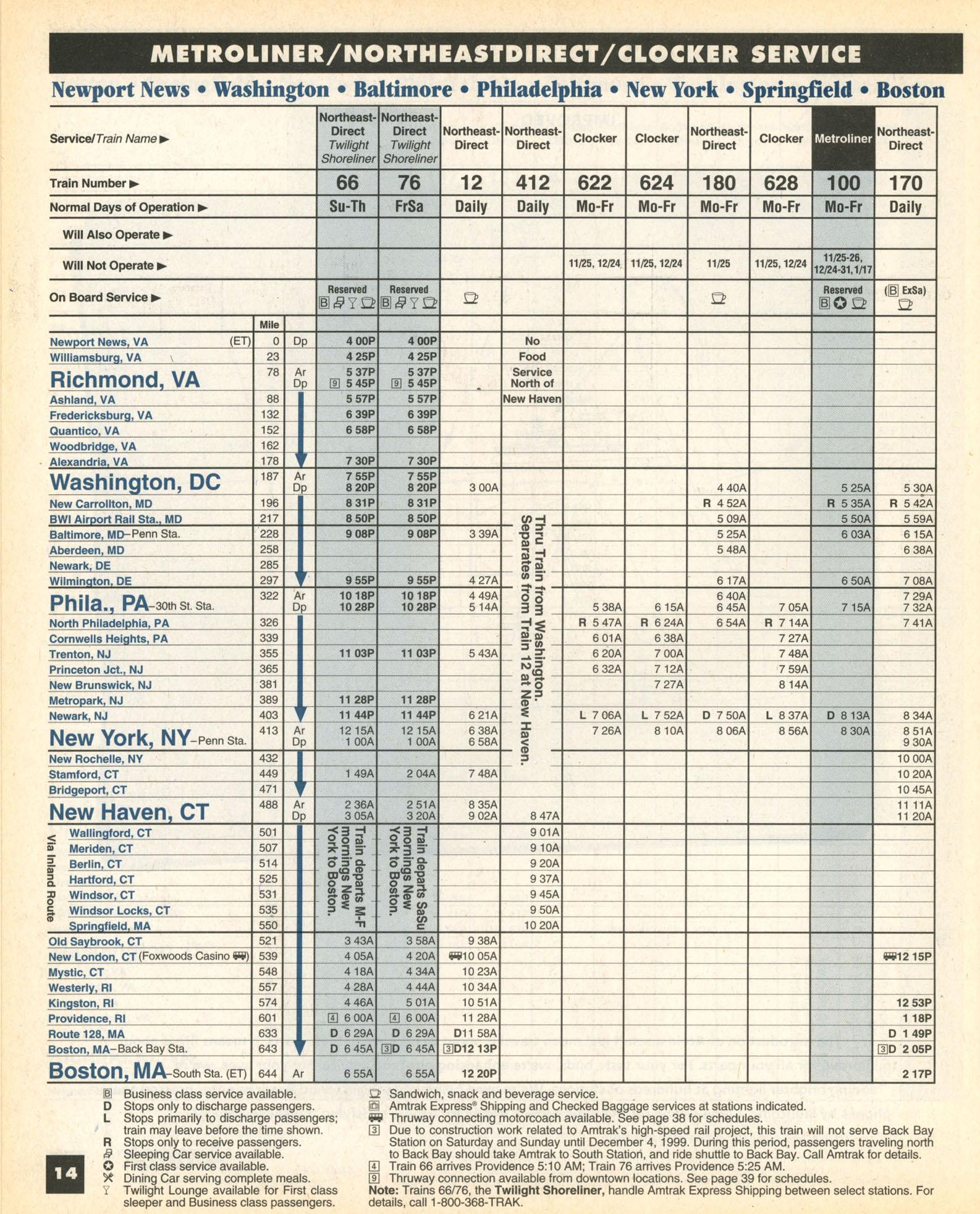This timetable image is ©1999 National Railroad Passenger Corporation (Amtrak).