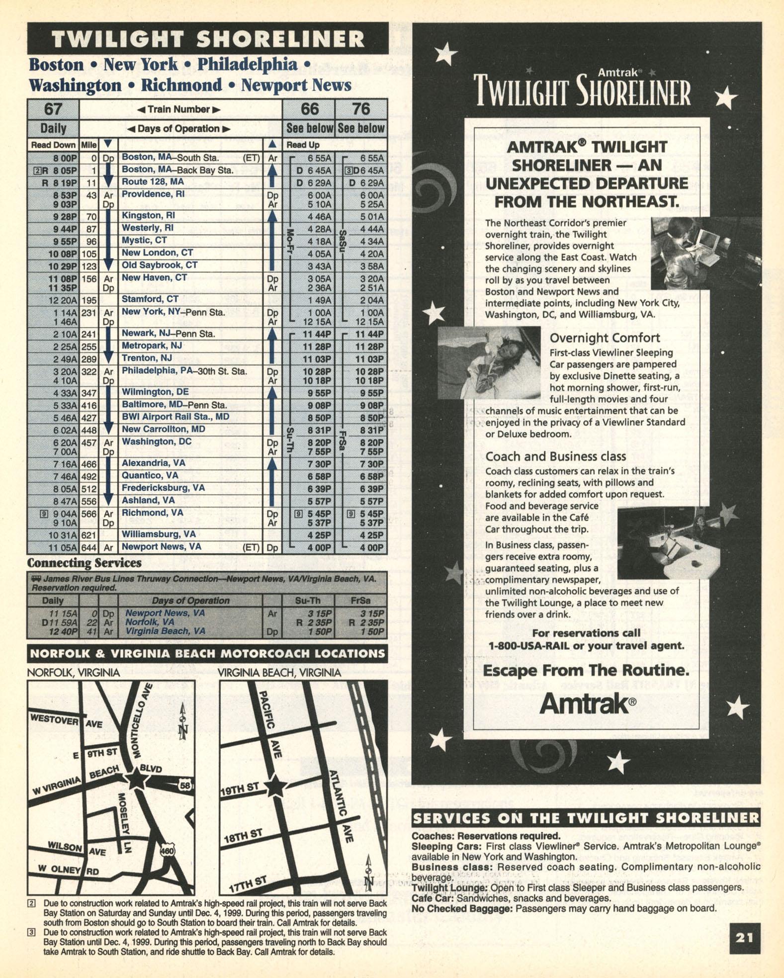 This timetable image is ©1999 National Railroad Passenger Corporation (Amtrak).