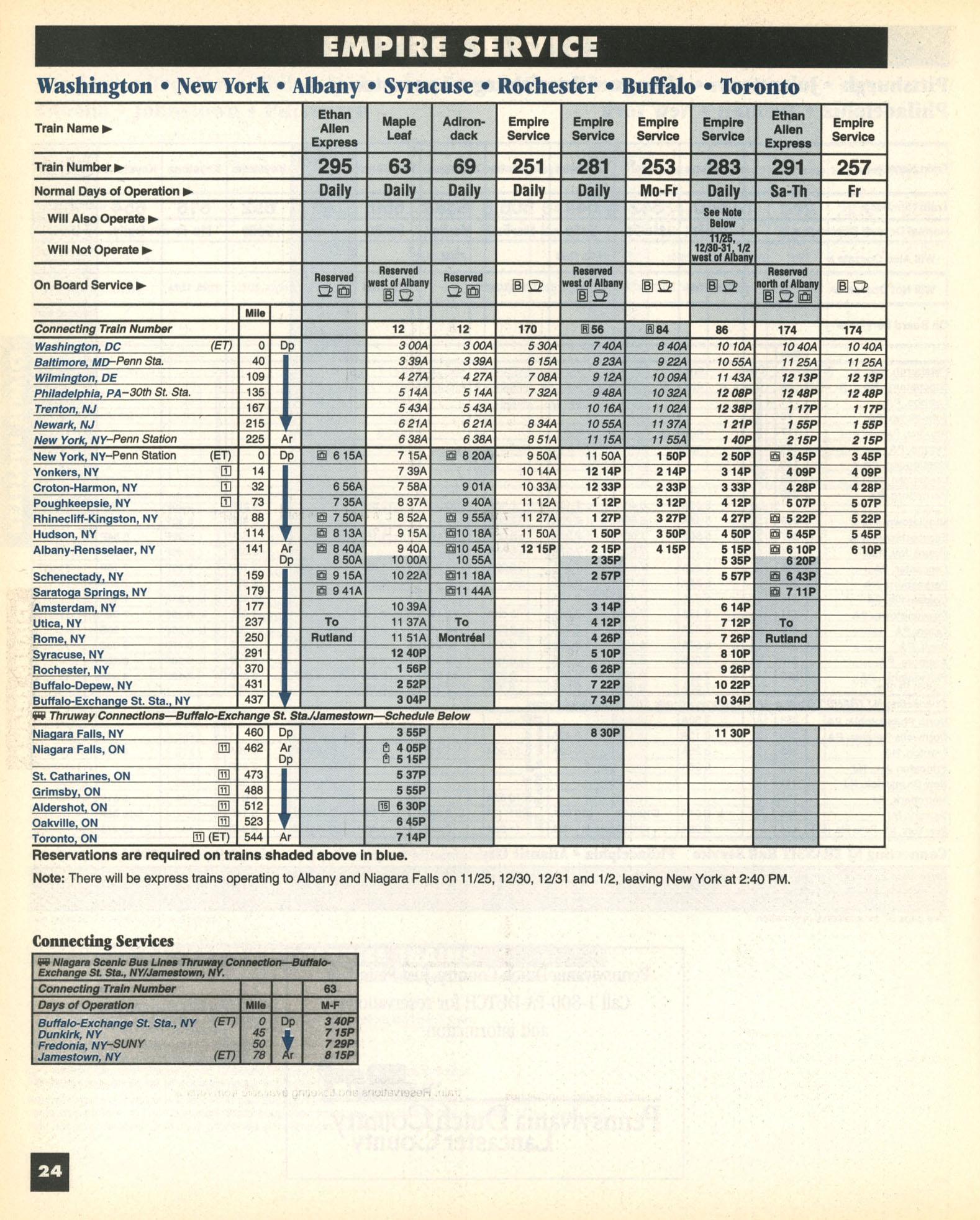This timetable image is ©1999 National Railroad Passenger Corporation (Amtrak).