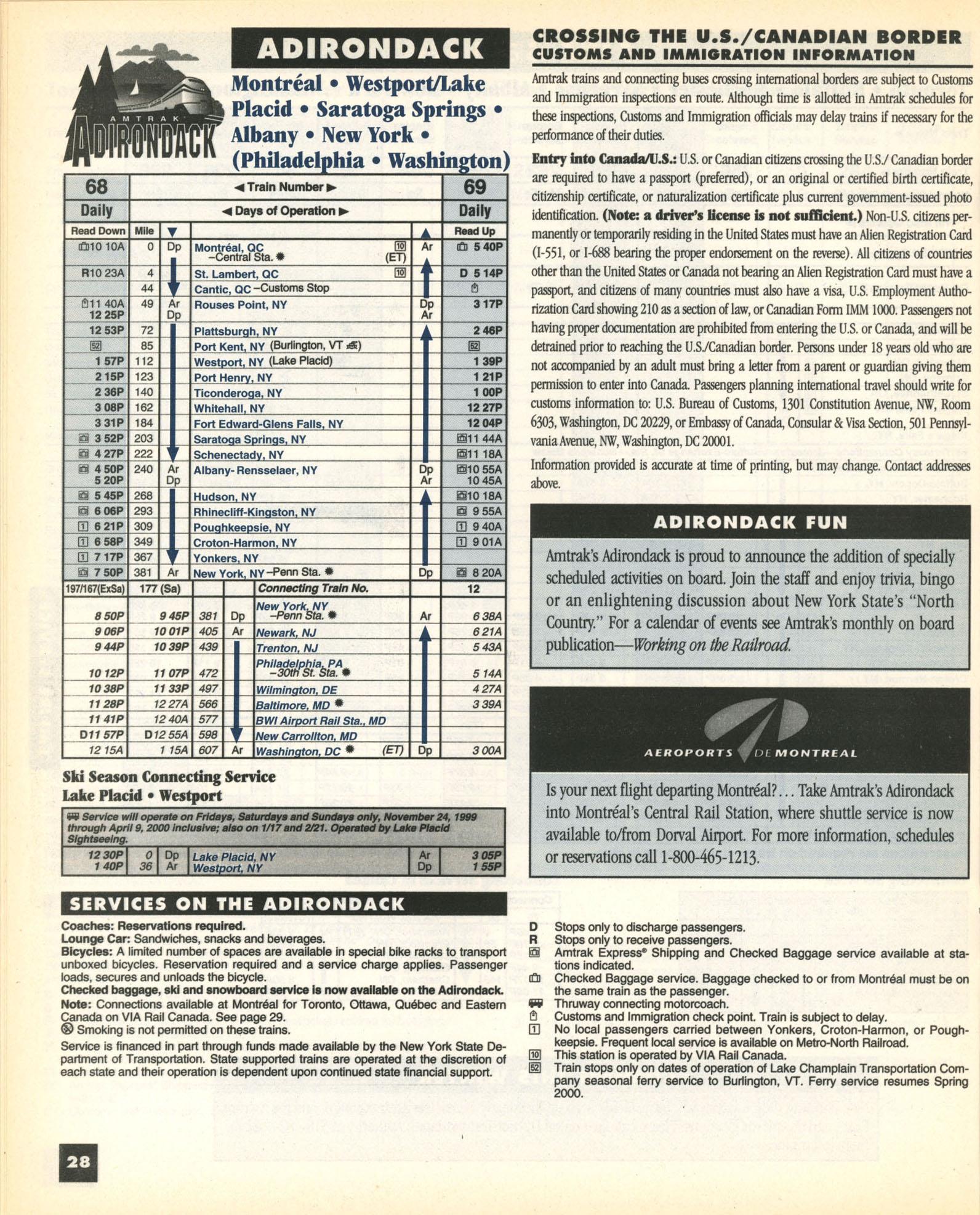 This timetable image is ©1999 National Railroad Passenger Corporation (Amtrak).