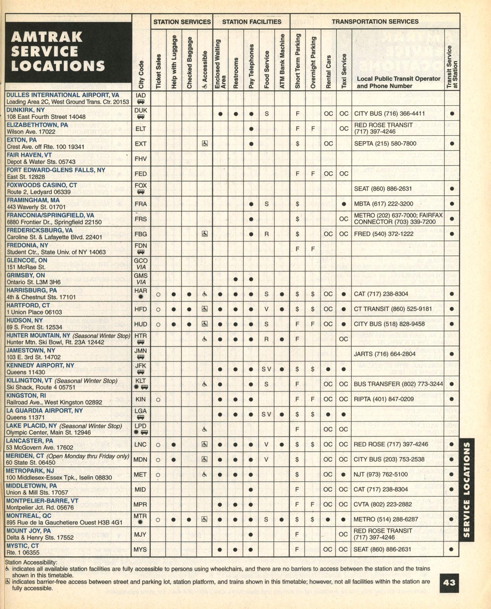 This timetable image is ©1999 National Railroad Passenger Corporation (Amtrak).