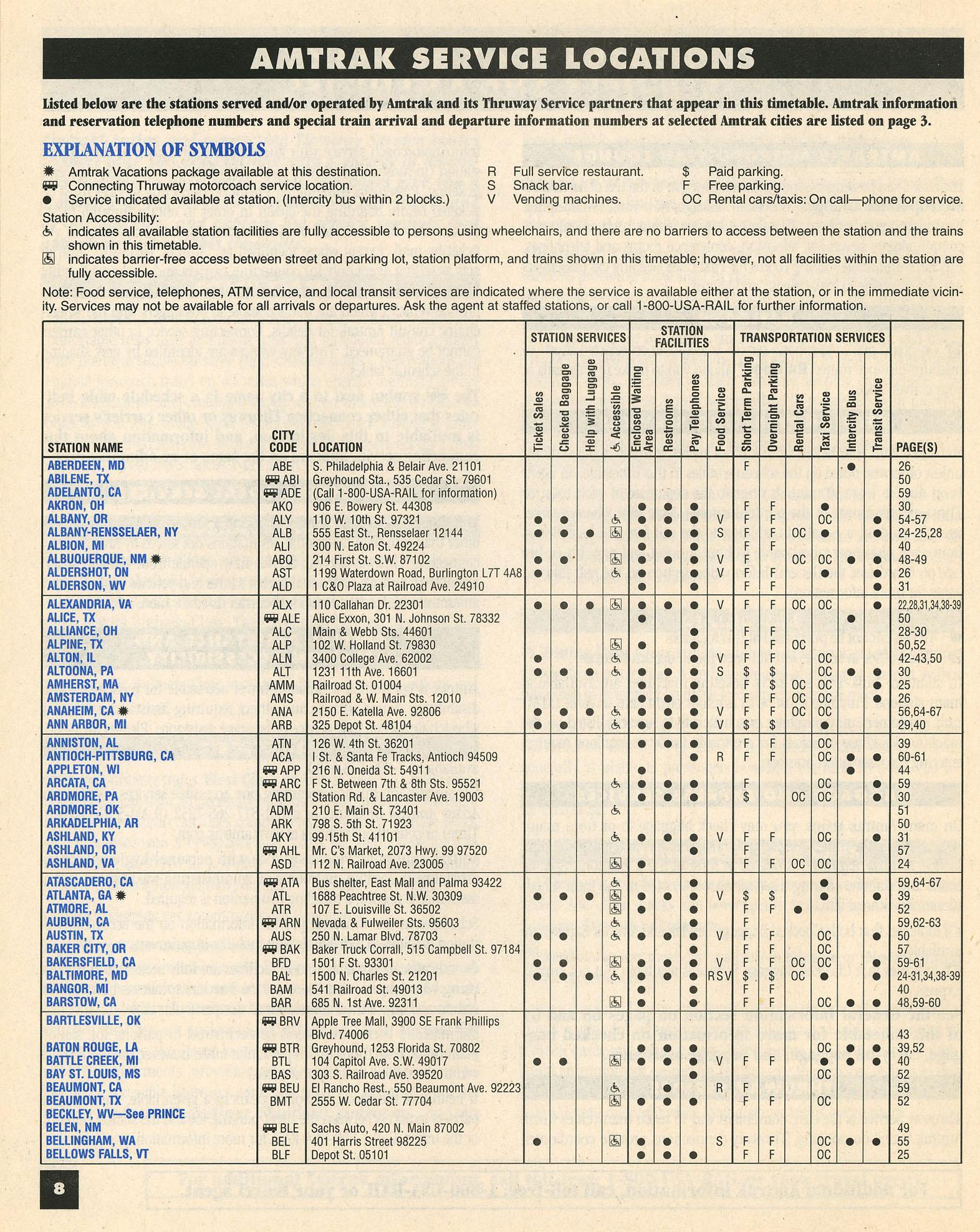 This timetable image is ©2000 National Railroad Passenger Corporation (Amtrak).