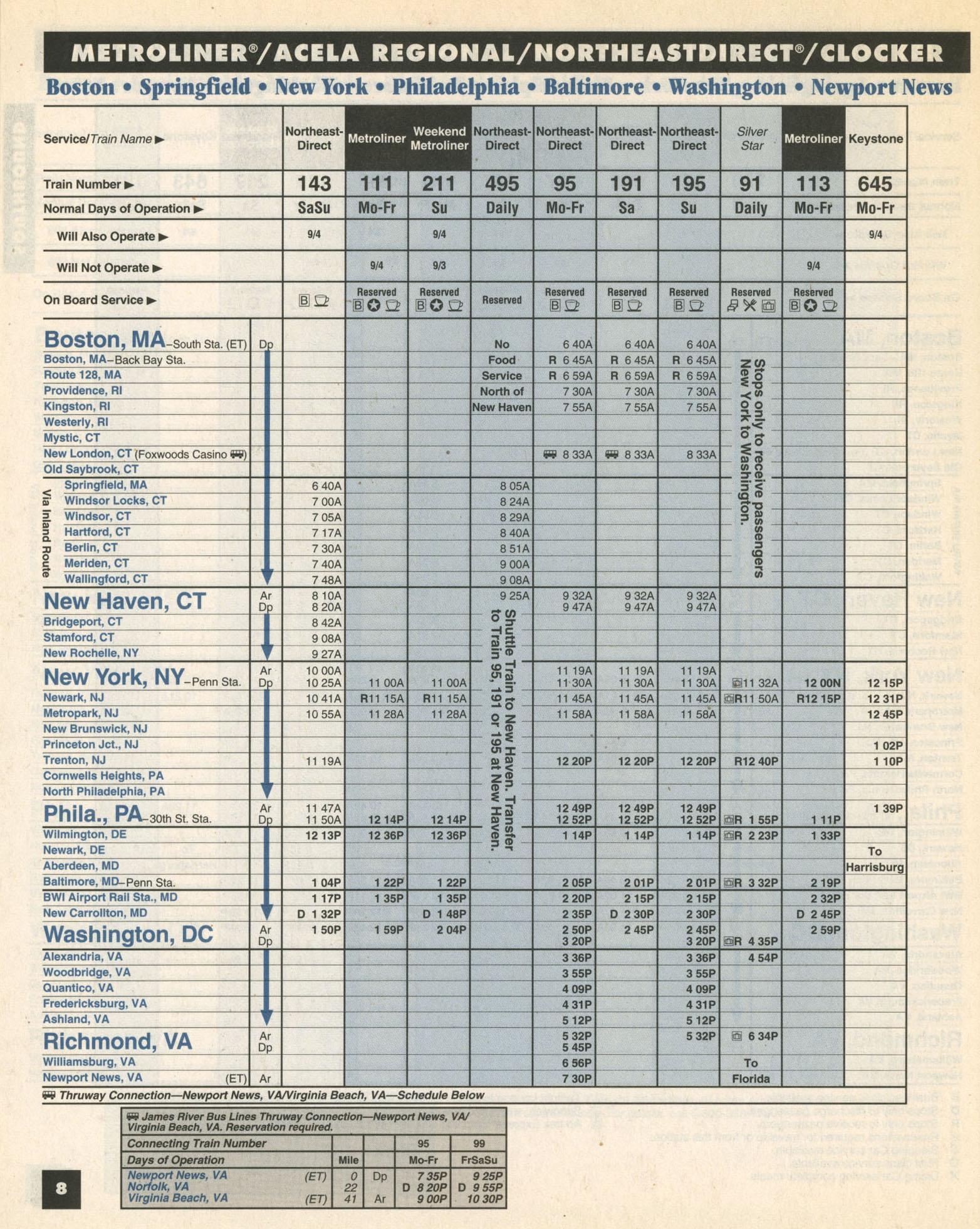 This timetable image is ©2000 National Railroad Passenger Corporation (Amtrak).