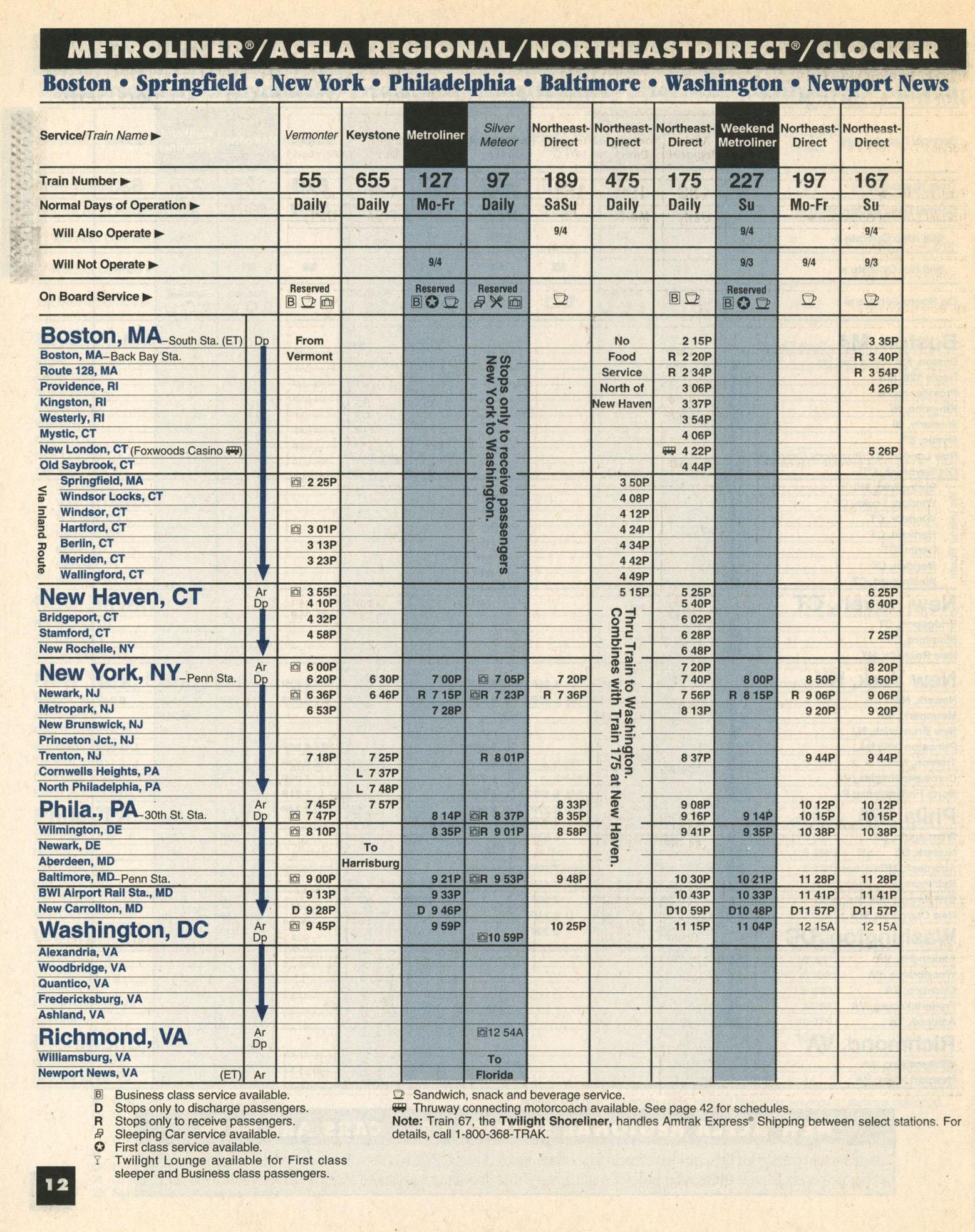 This timetable image is ©2000 National Railroad Passenger Corporation (Amtrak).
