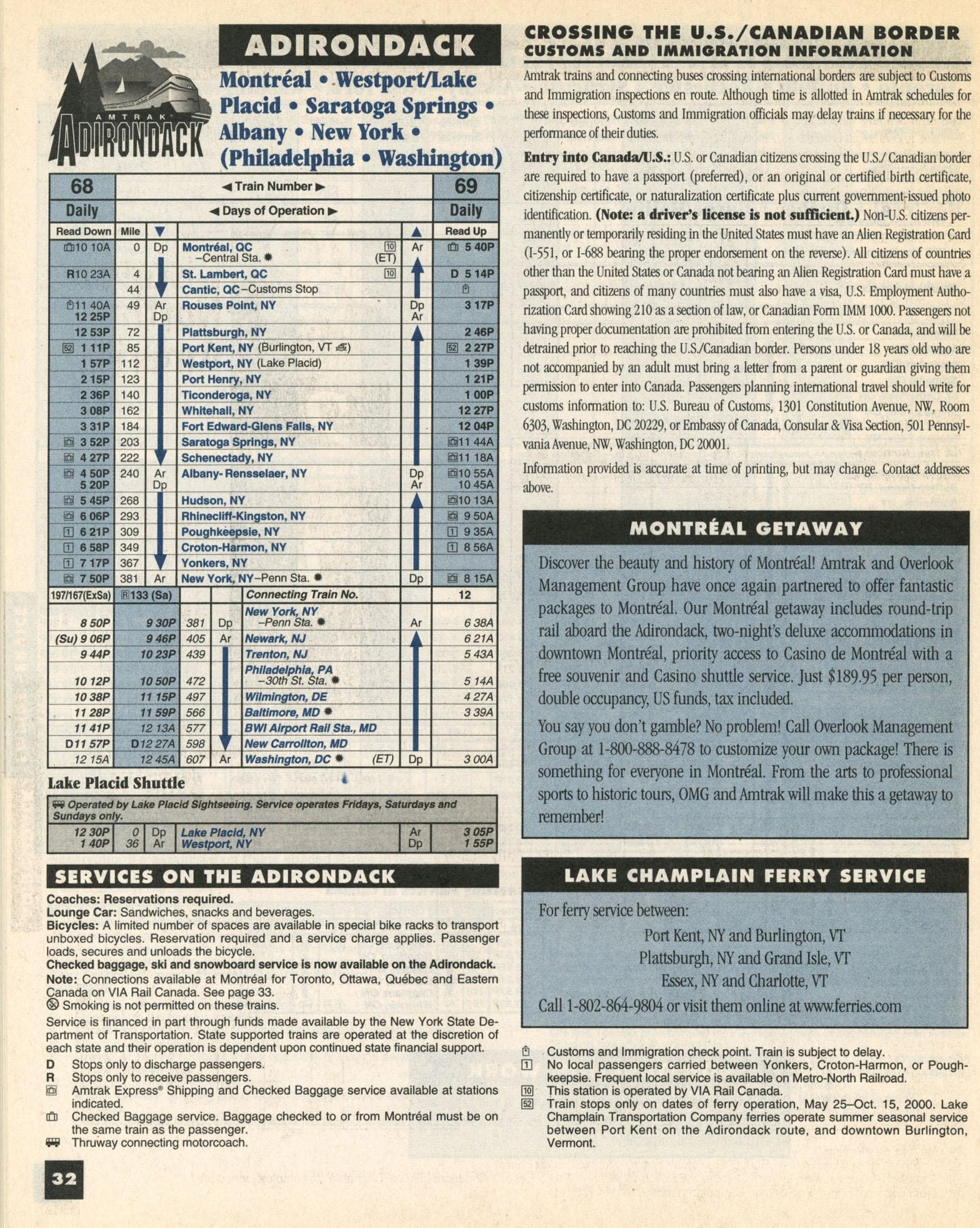 This timetable image is ©2000 National Railroad Passenger Corporation (Amtrak).