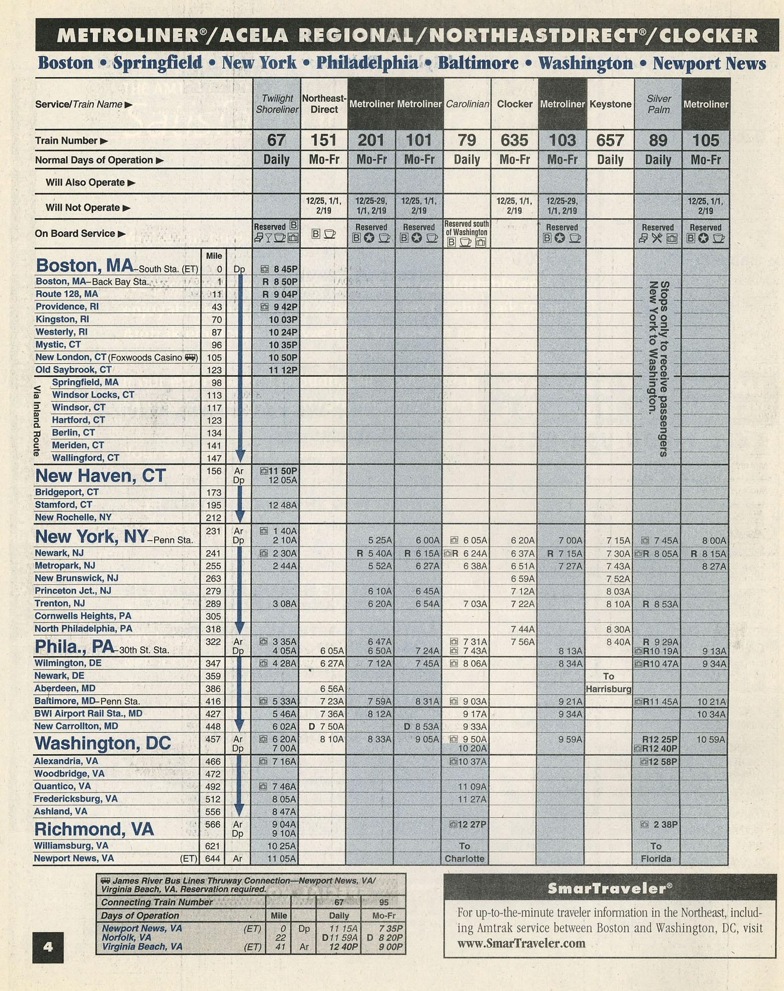 This timetable image is ©2000 National Railroad Passenger Corporation (Amtrak).