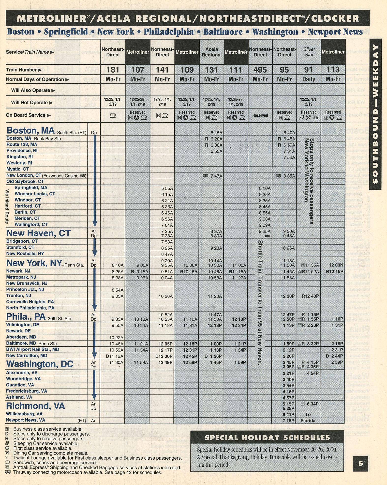 This timetable image is ©2000 National Railroad Passenger Corporation (Amtrak).