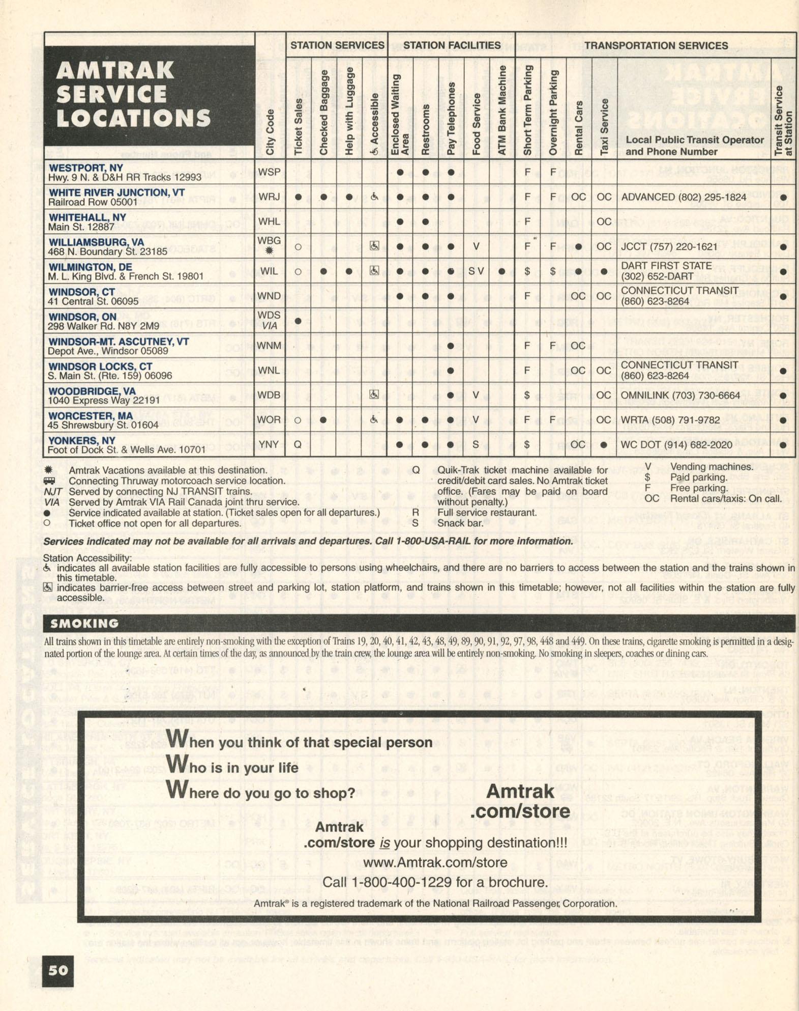 This timetable image is ©2000 National Railroad Passenger Corporation (Amtrak).