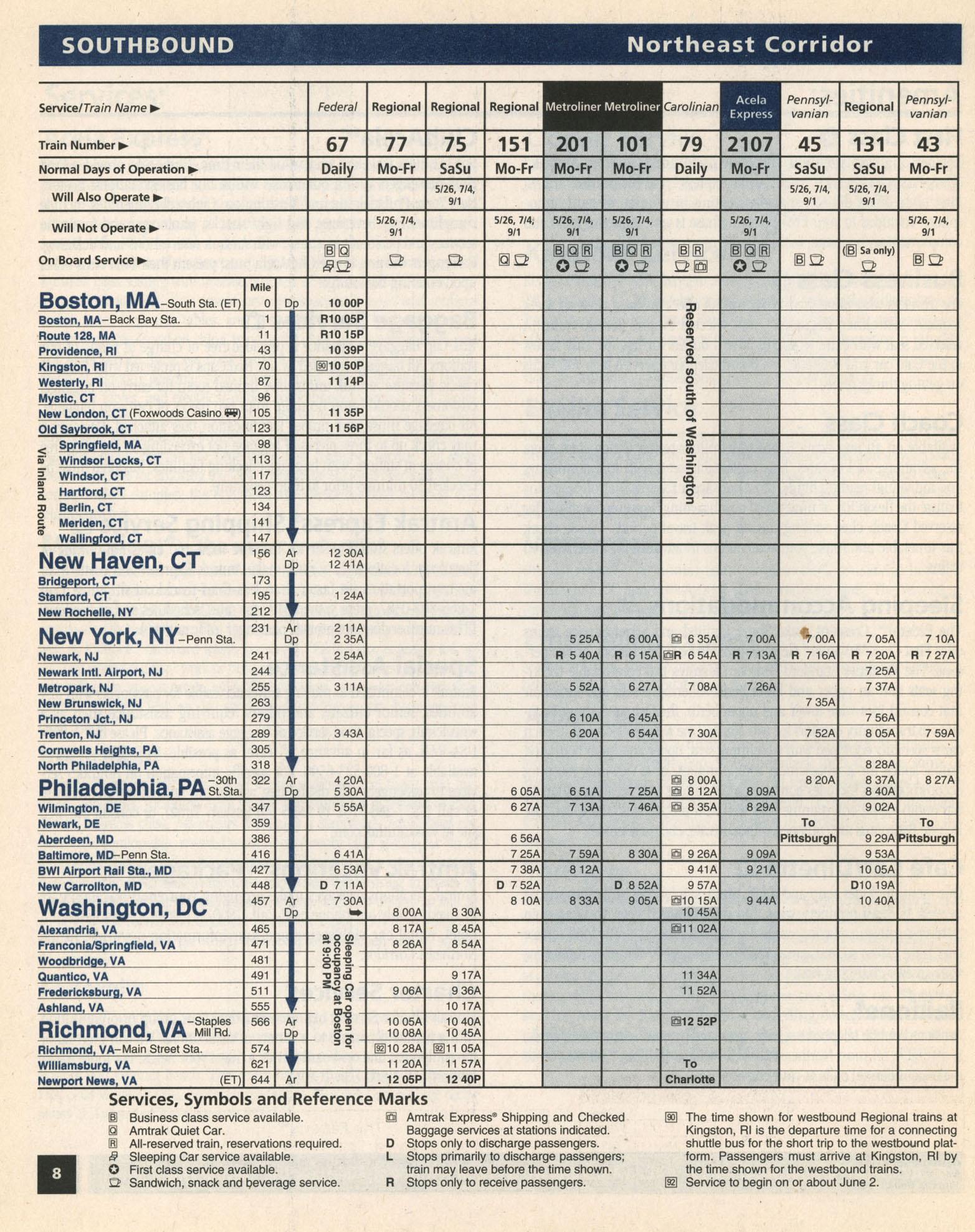This timetable image is ©2003 National Railroad Passenger Corporation (Amtrak).