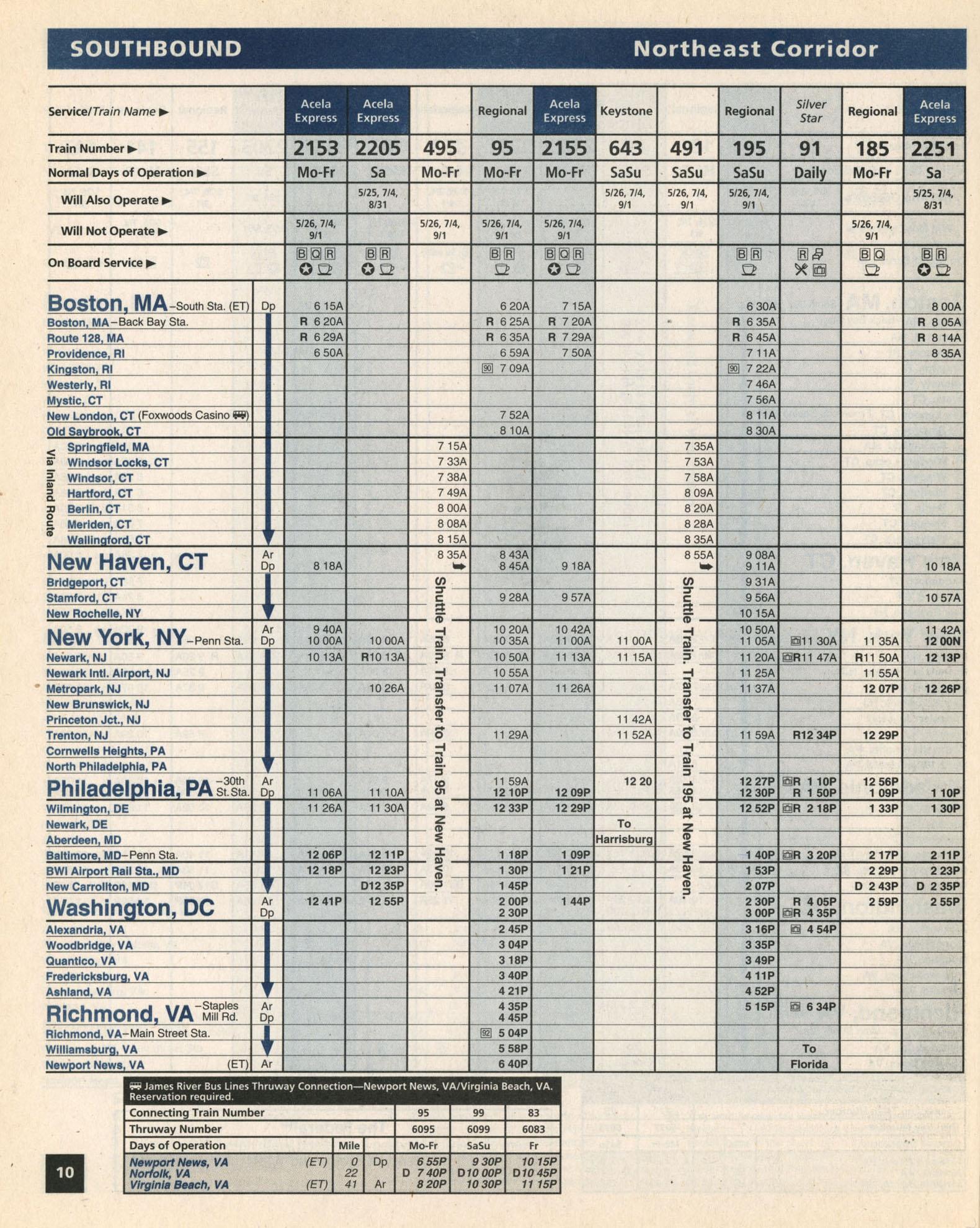 This timetable image is ©2003 National Railroad Passenger Corporation (Amtrak).