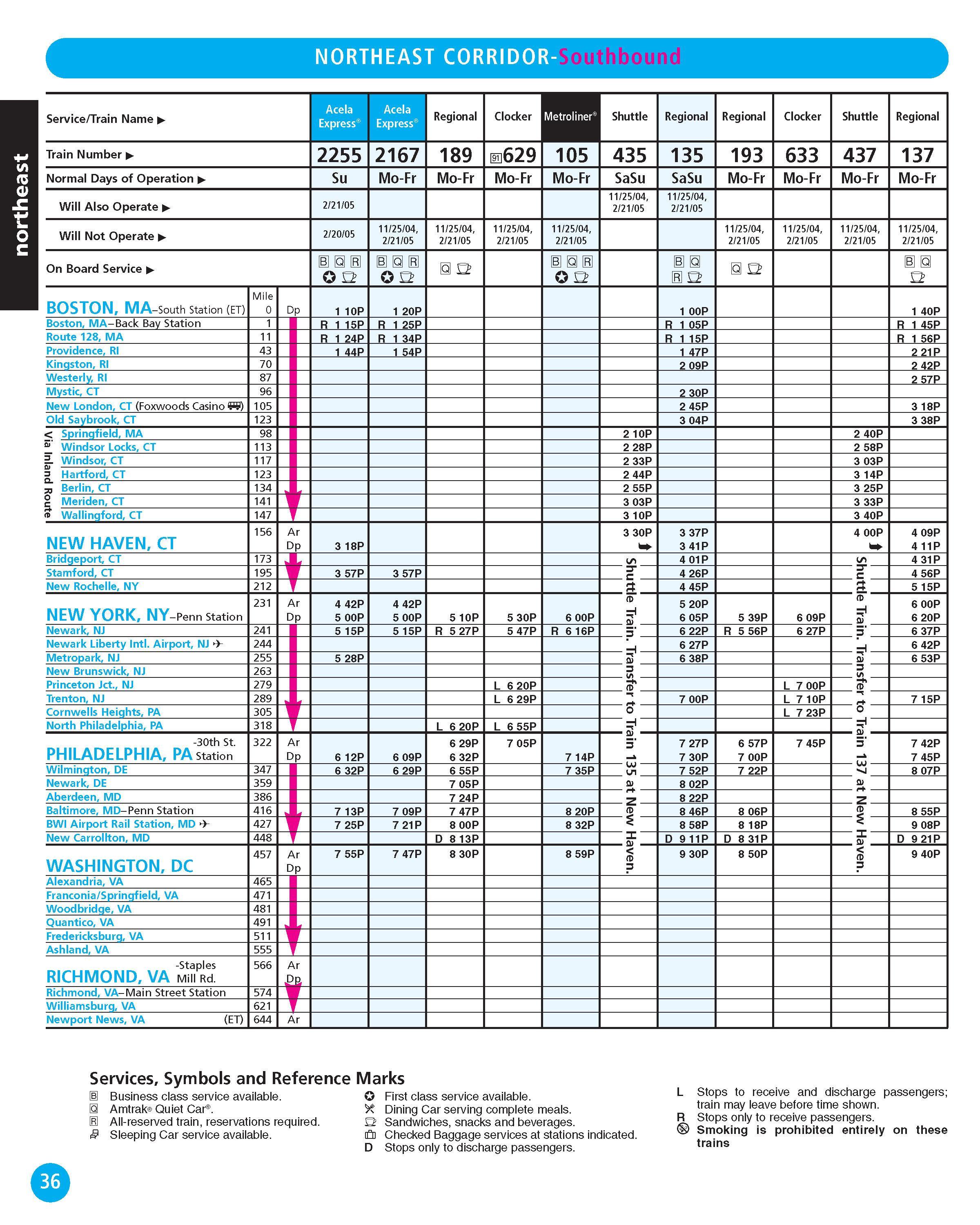 This timetable image is ©2004 National Railroad Passenger Corporation (Amtrak).